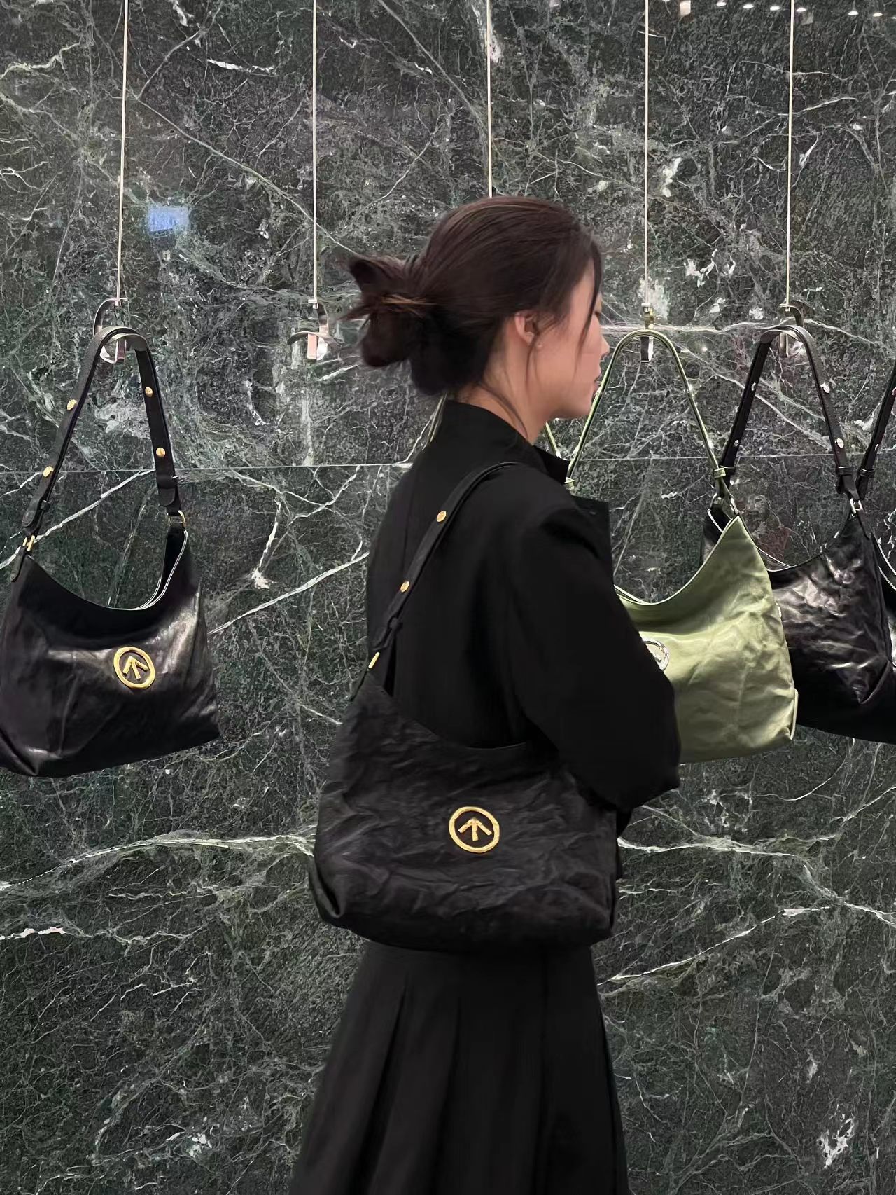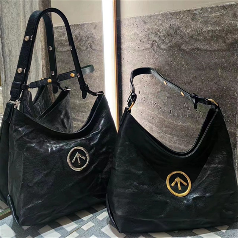 GROTTO 섹스리스 블랙 스톤 호보 가방 주름 손 어깨 크로스 바디 겨드랑이 부드러운 가죽 화살표 가방스토어 가기