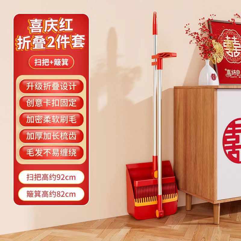 빗자루 세트 가정 결혼식 집들이 축제 조합 먼지 팬 집들이 빨간 빗자루를 쓸어 버리는 더스트 팬 빗자루