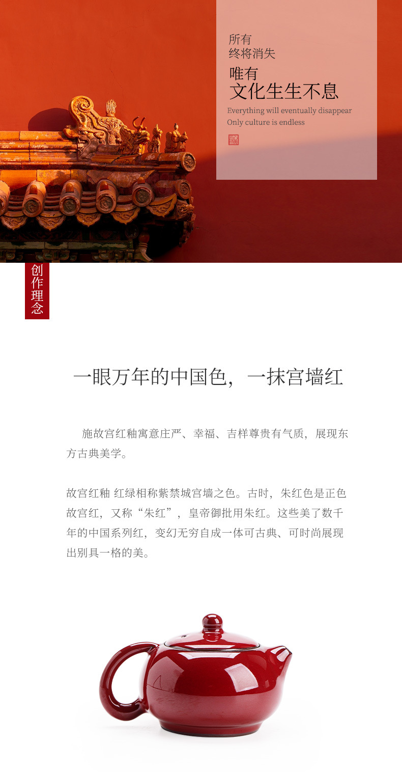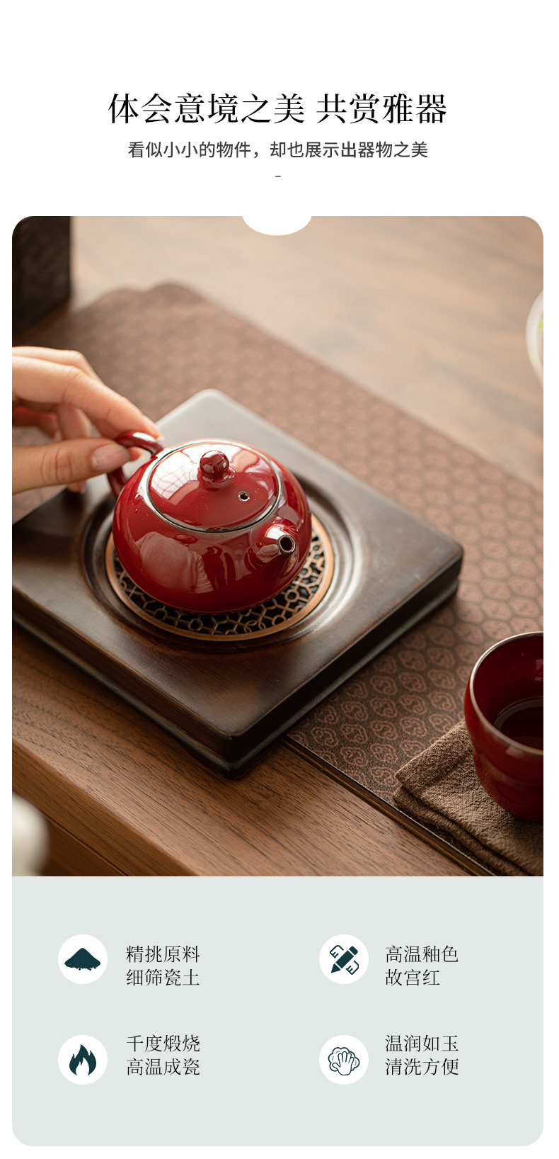 Guofeng 자금성 붉은 랑 붉은 수제 철 주전자 세라믹 차 세트 참관 주전자 주전자 축제 동반 행사스토어 가기