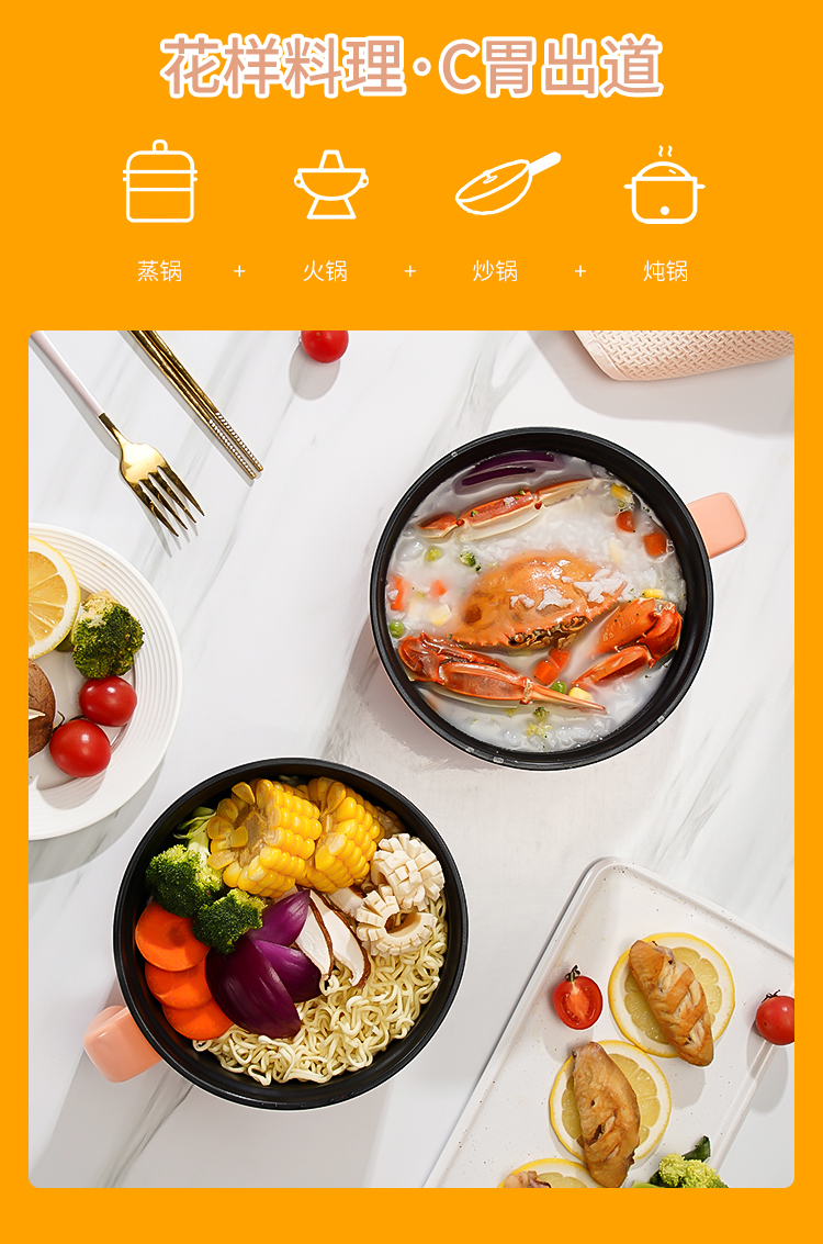 한 조각 전기 뜨거운 냄비 단일 국수 냄비 미니 작은 학생 전기 요리 냄비 기숙사 가정용 작은 다기능 전기 냄비