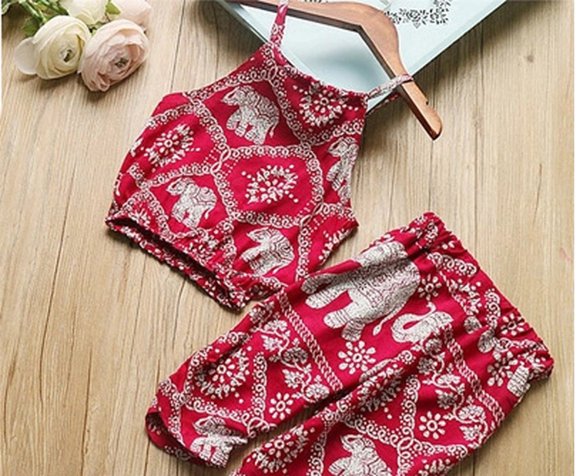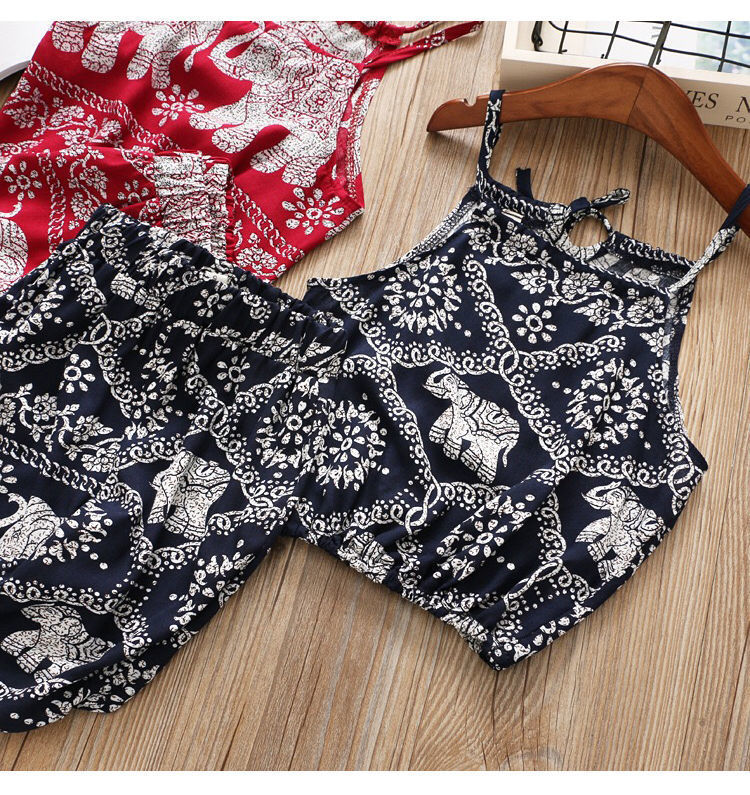 소녀 조끼 2 피스 여름 아기 소녀를위한 새로운 민소매 인쇄 슬링 탑