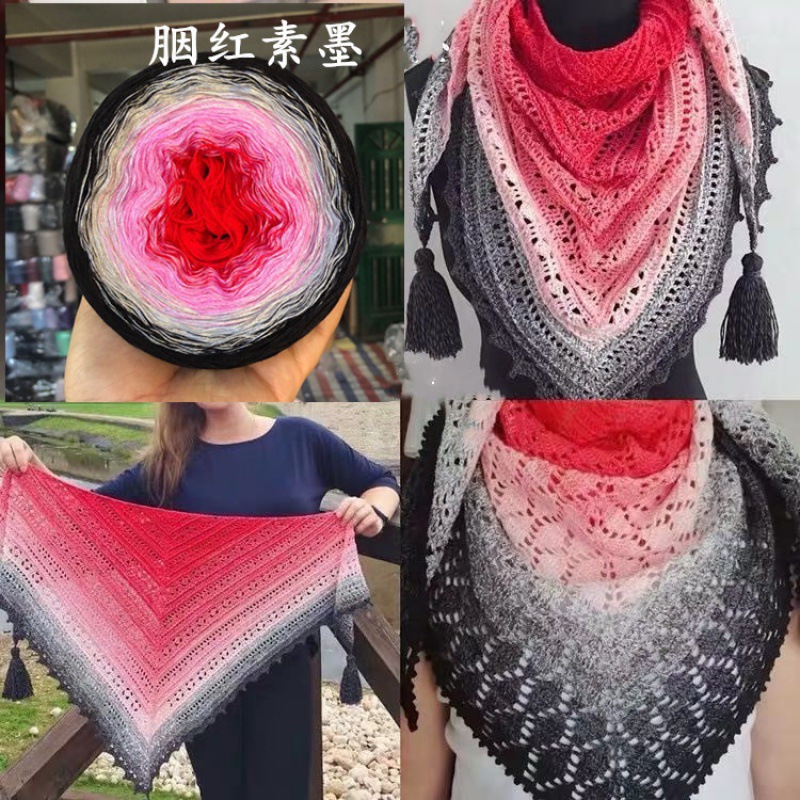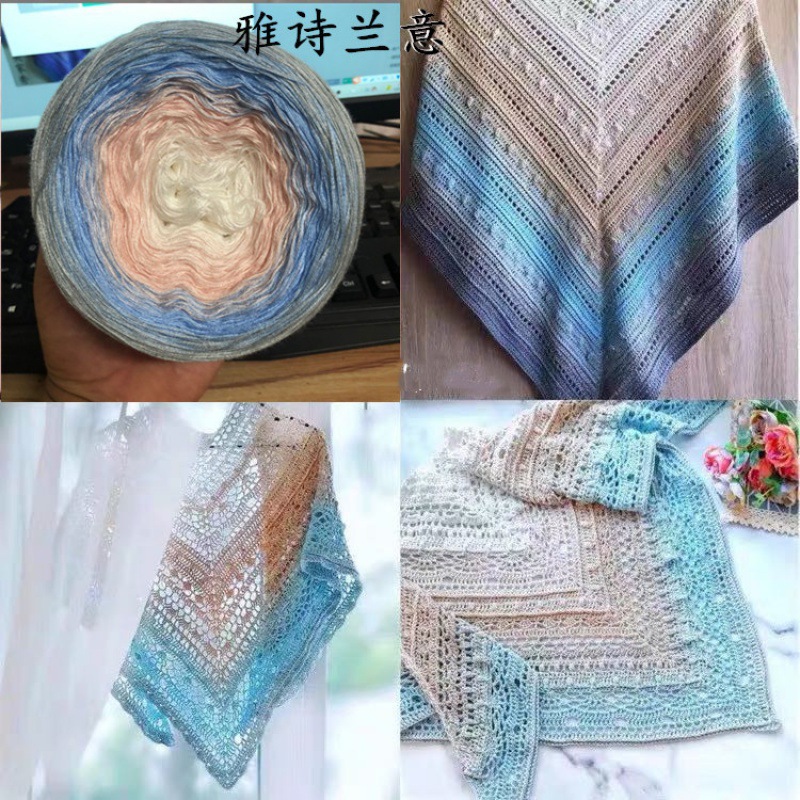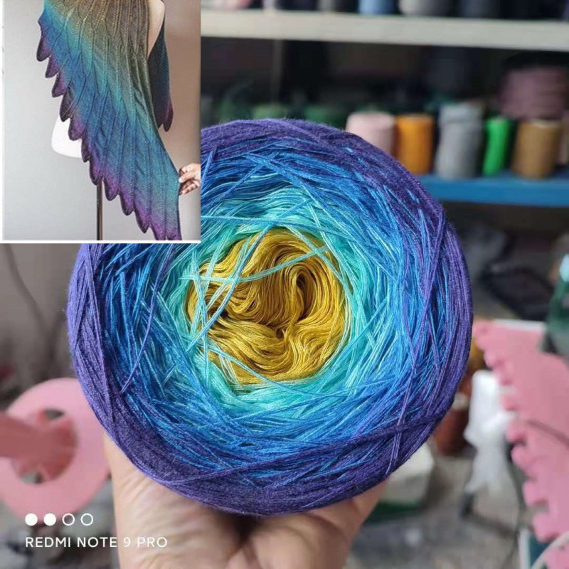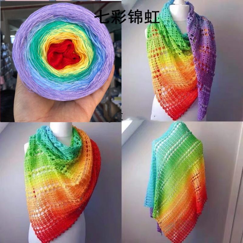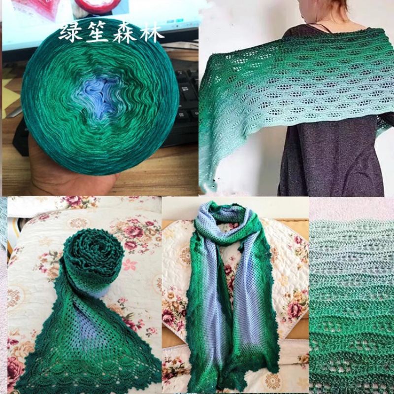유기농 레이스 코튼 혼합 재고 고블린 라인 손으로 상처 케이크 라인 그라디언트 긴 섹션 염료 봄과 여름 목도리 스카프 모직 라인 첸