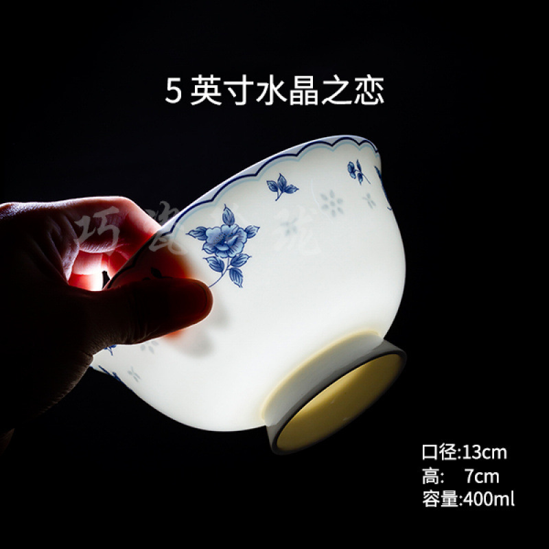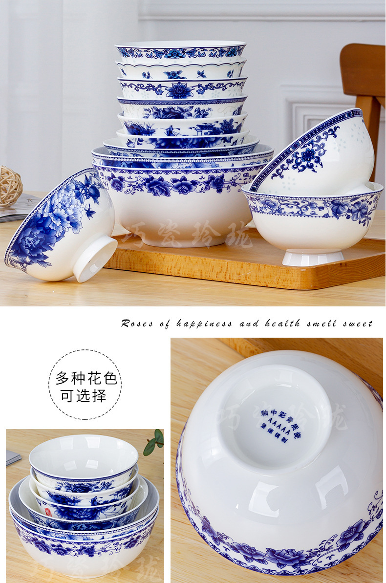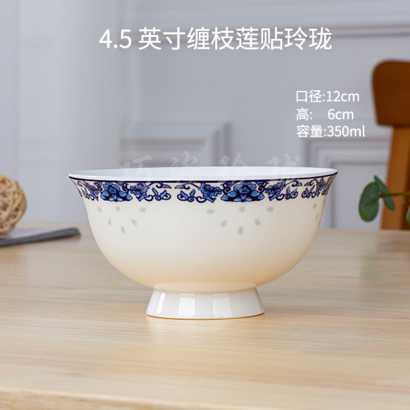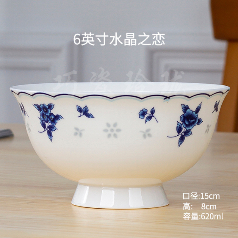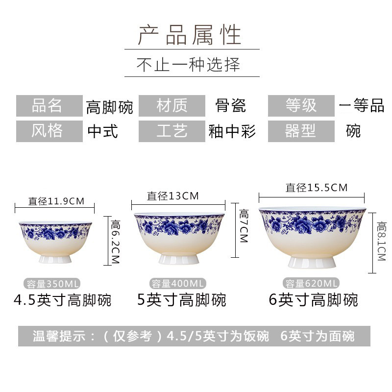 10 Jingdezhen 고온 유약 파란색과 흰색 도자기 가정용 세트 밥 그릇 뼈 중국 국수 그릇 높은 발 세라믹 도매스토어 가기