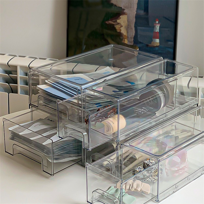 -페이셜 마스크 보관 상자 데스크탑 화장품 스킨 케어 제품 가정용 기숙사 잡화 투명 아크릴 서랍 유형 마무리스토어 가기