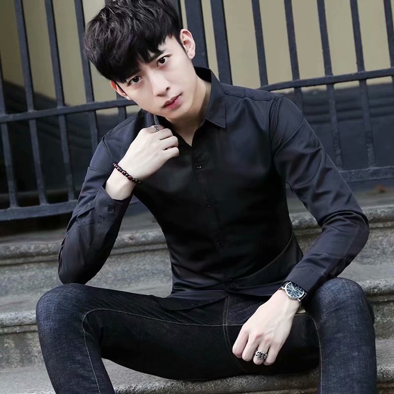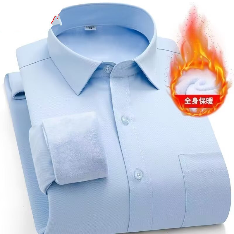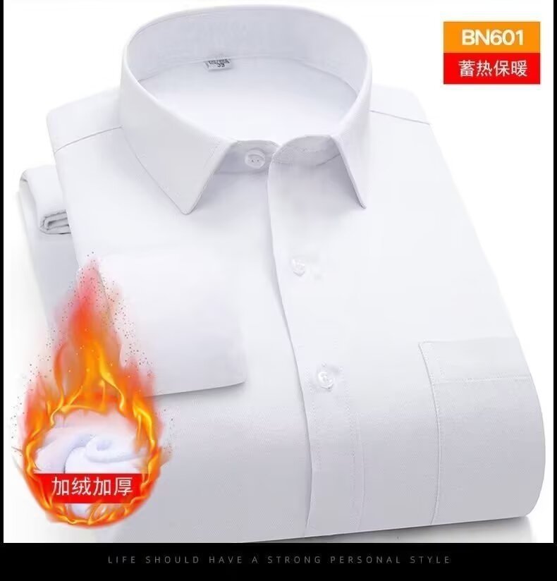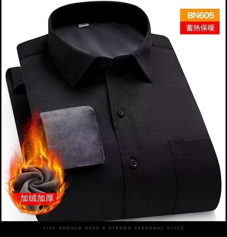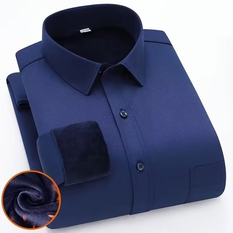 2025 새로운 하이 엔드 트렌즈없는 기모 셔츠 남자의 긴팔 주름 안티 다림질 단색 비즈니스 캐주얼 높은 탄성 따뜻한 셔츠스토어 가기