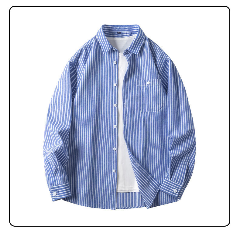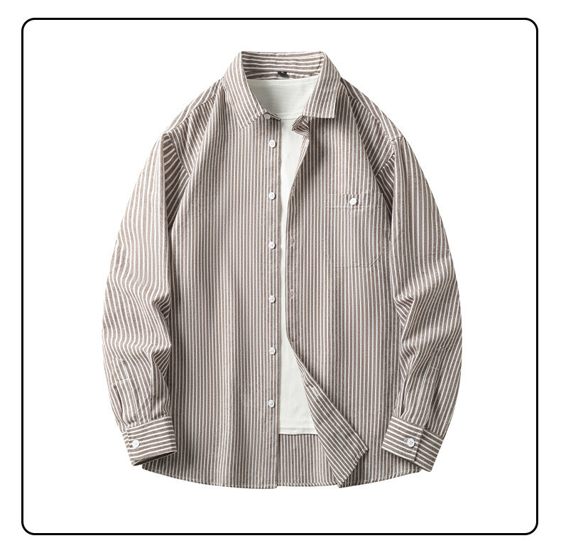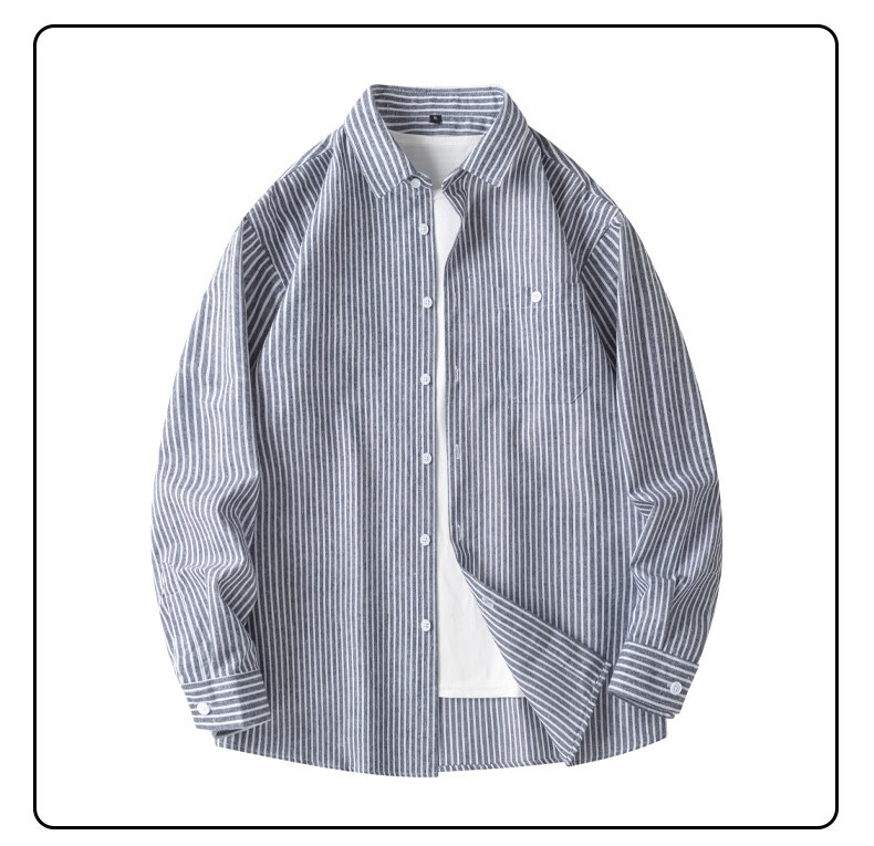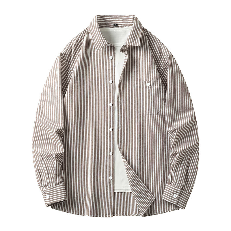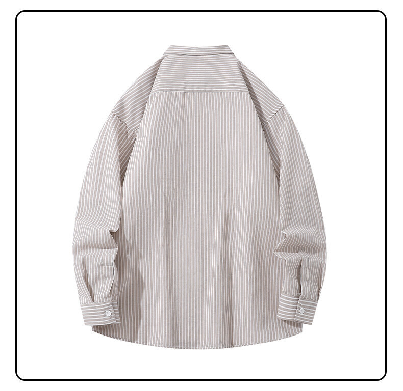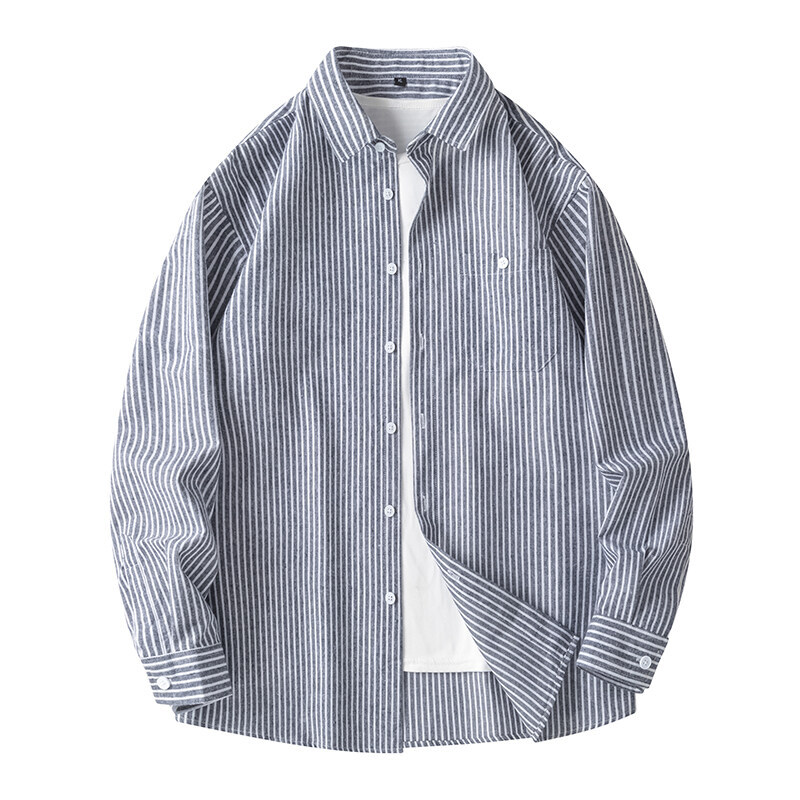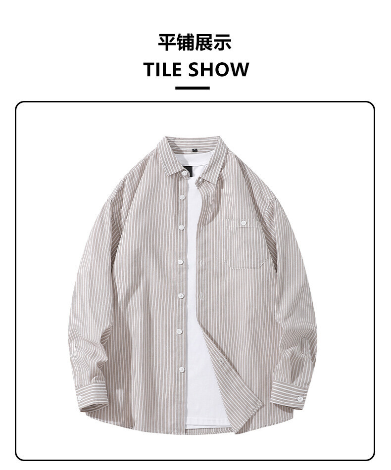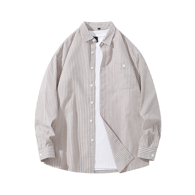 봄 새로운 수직 프린트 셔츠 복고풍 패션 브랜드 셔츠 느슨한 드레이프 캐주얼 남성 재킷 도매를위한 실행 볼륨