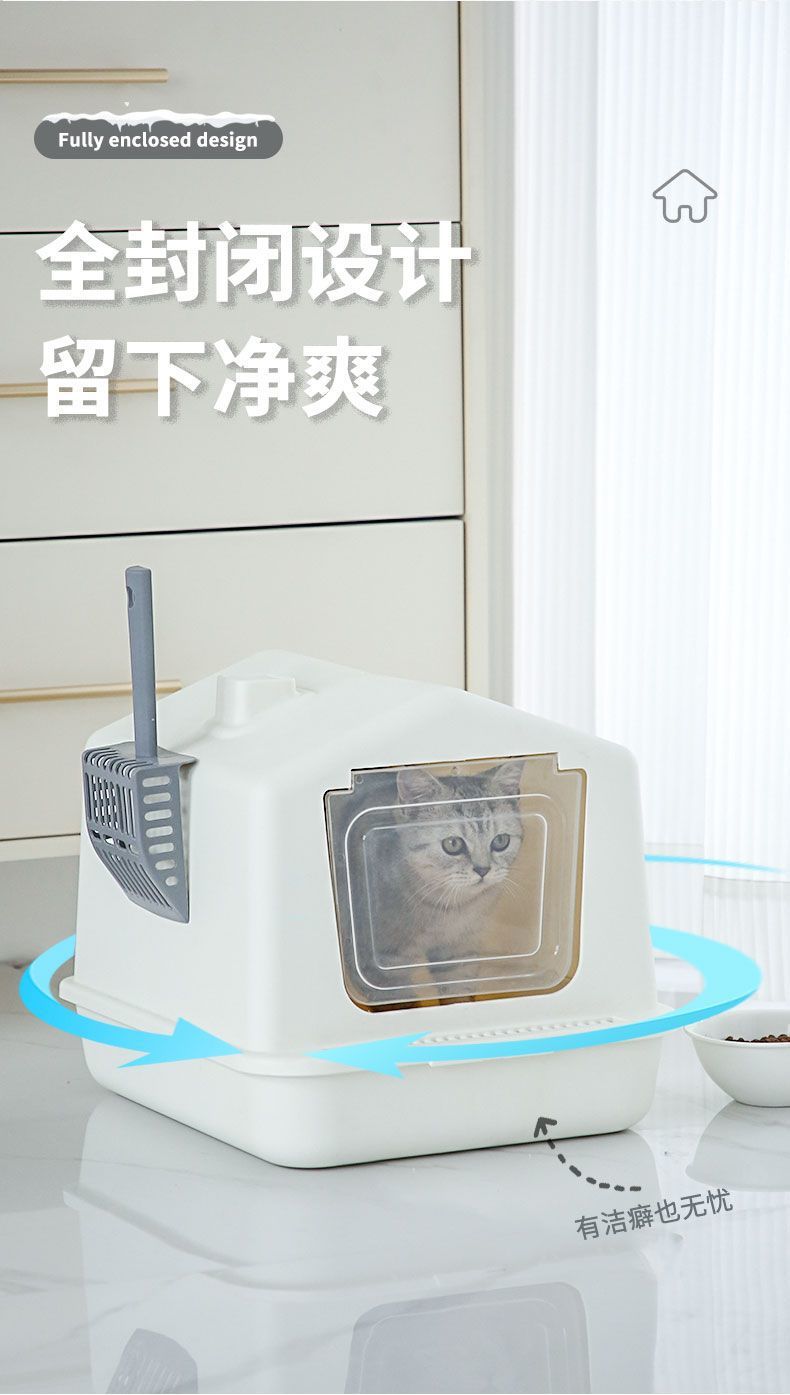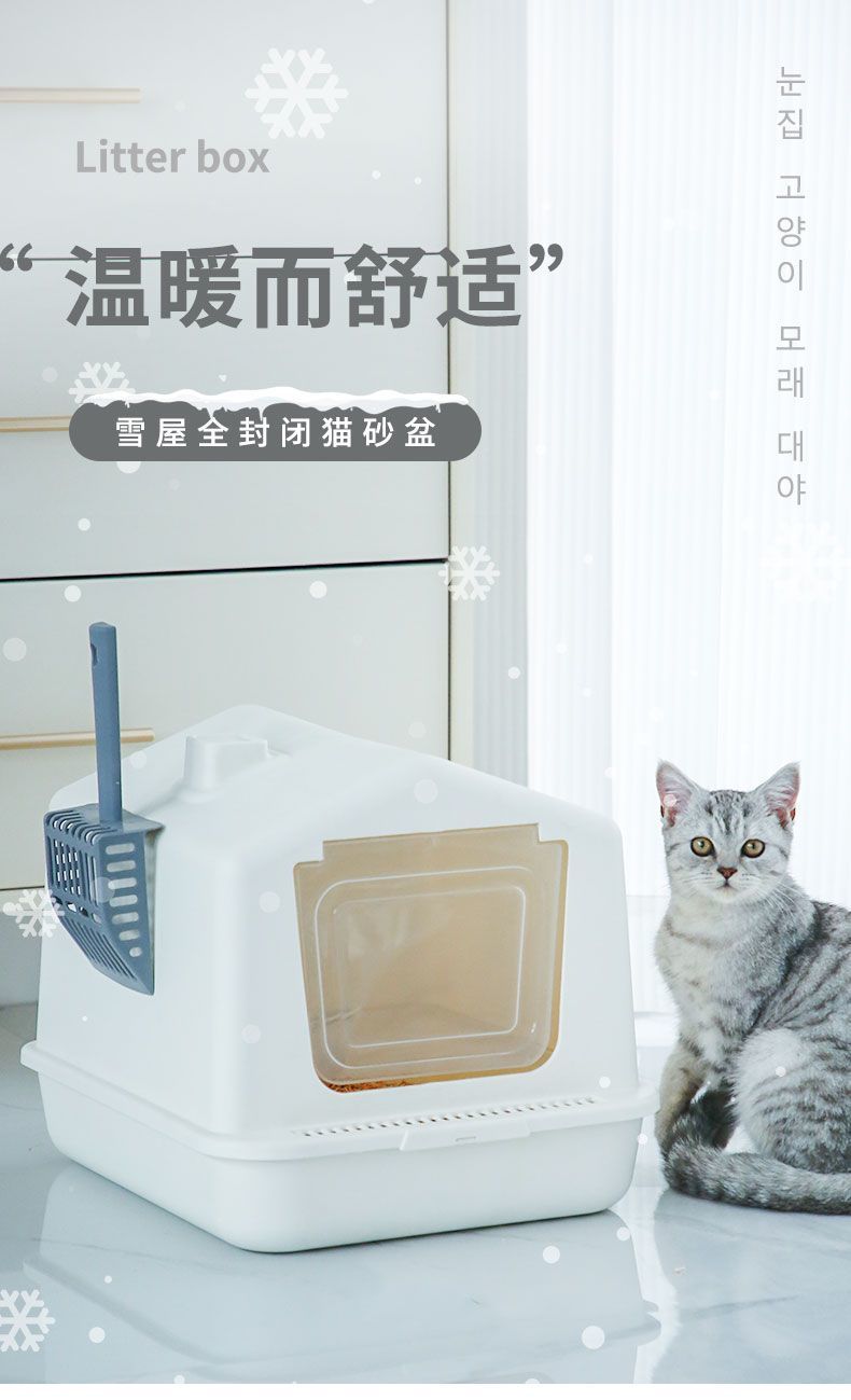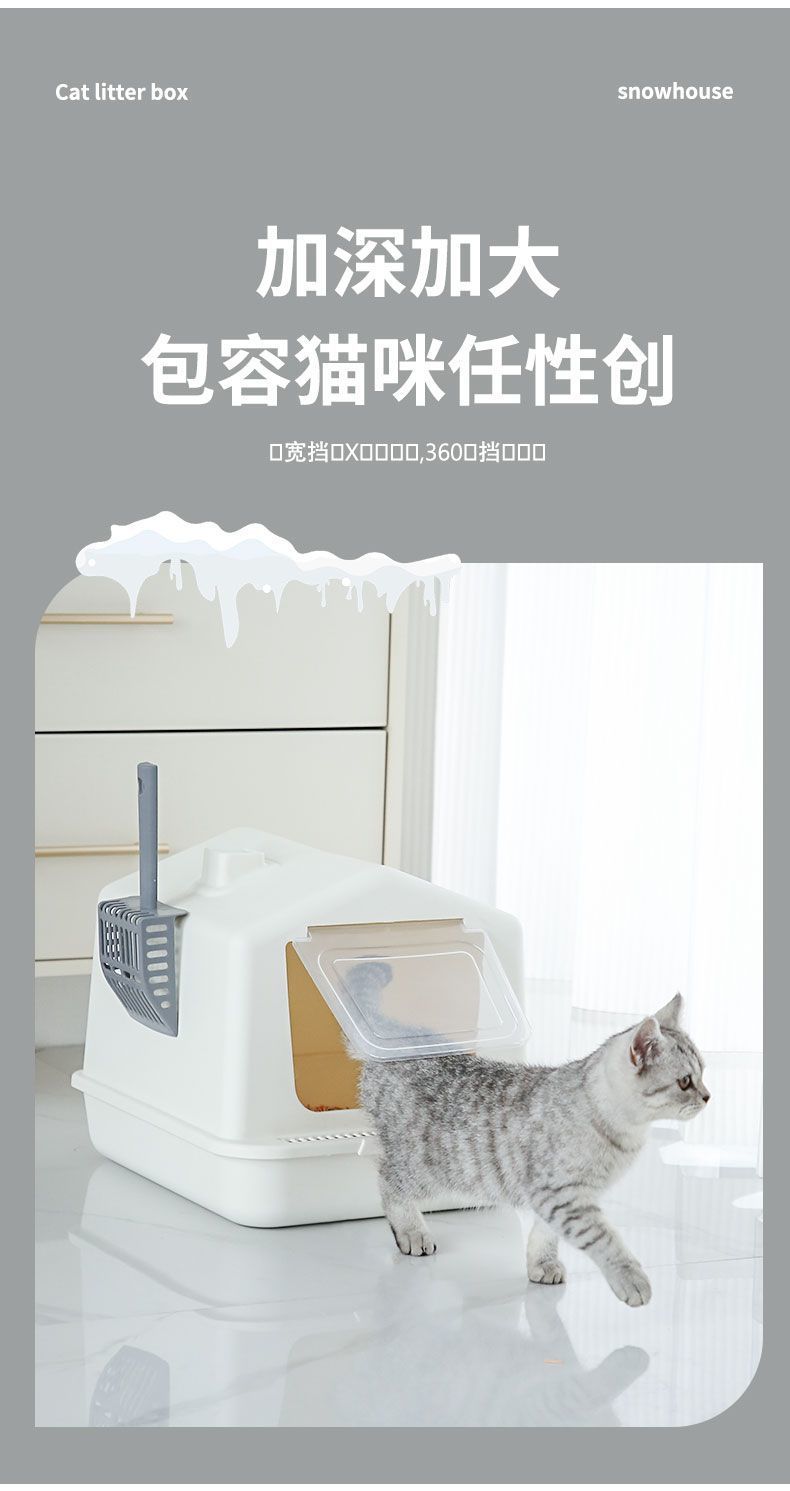 XZ [585 명 칭찬] 스노우 하우스 고양이 쓰레기통 완전히 밀폐 된 대형 스플래시 방지 폐쇄 방습 냄새 방지