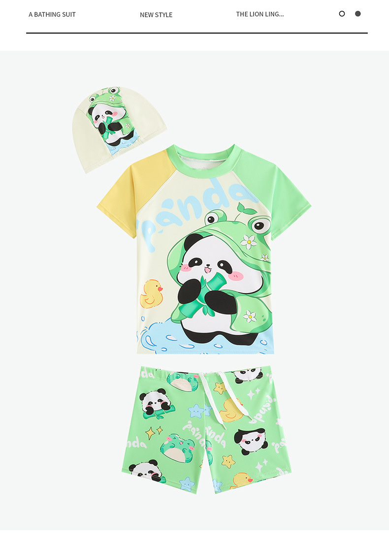 어린이 수영복 2025 새로운 소년 만화 팬더 안티-짧은 소매 수영복 분할 작은 중간 큰 아이 빠른 건조 분할