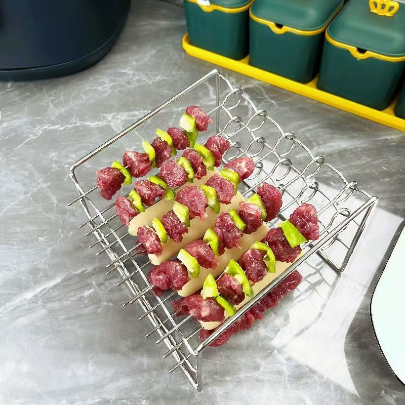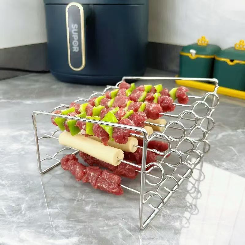 에어 프라이어 그릴 스테인레스 스틸 수직 그릴 걸이 스탠드 꼬치 바베큐 사인 오븐 액세서리 도매스토어 가기