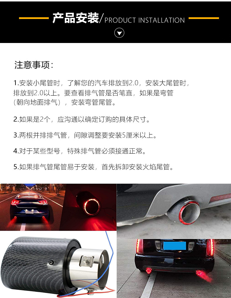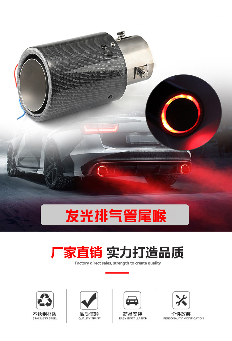 자동차 수정 탄소 섬유 발광 꼬리 목 높은 온도 램프 수정 자동차 배기 파이프 화재 꼬리 목
