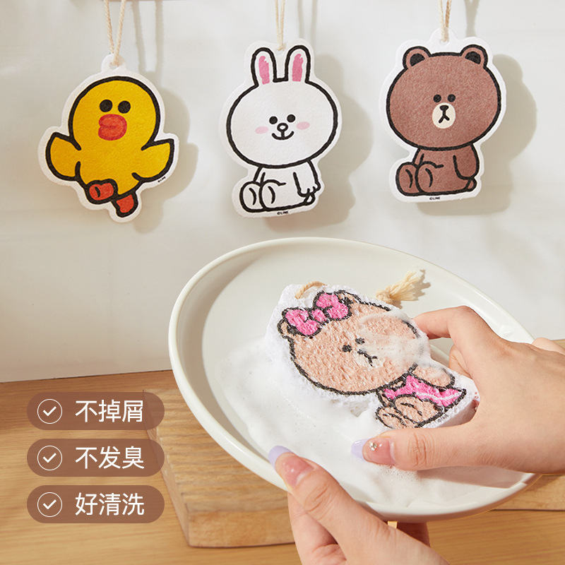 LINEFRIENDS 목재 펄프 면 식기 세척 흡수성 린프가없는 가정용 식기 세척 천 스폰지 주방 행주