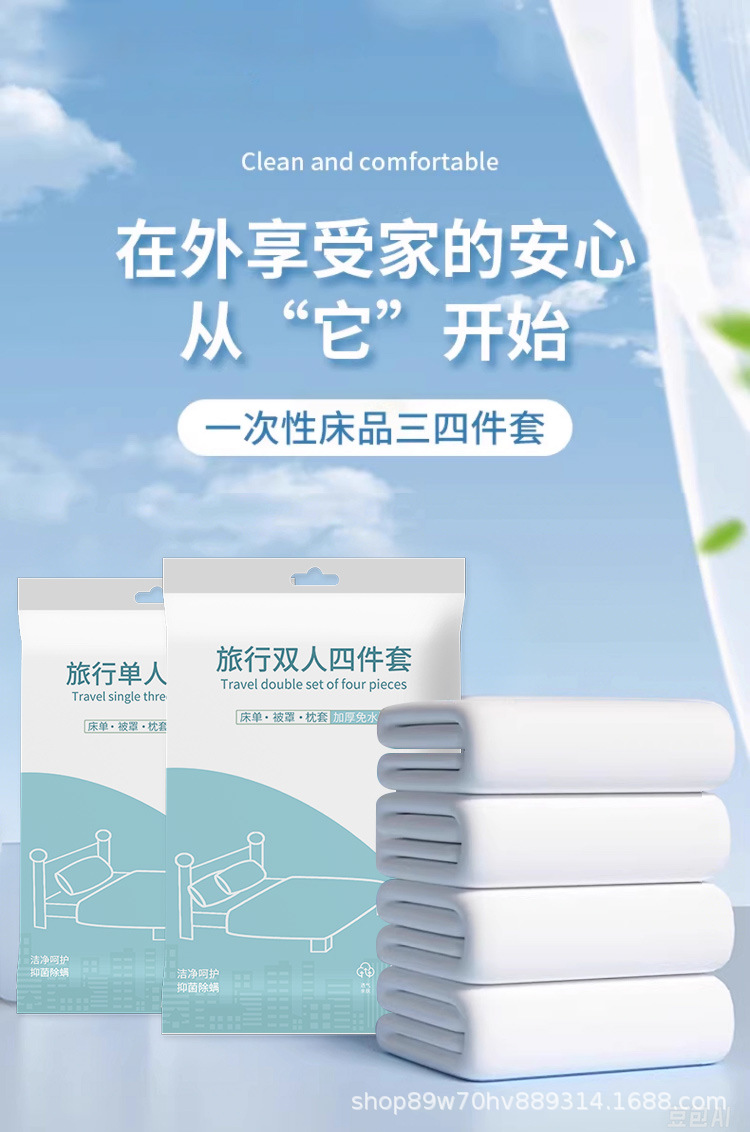 일회용 침대 시트 모자 퀼트 커버 베개 케이스 여행 더러운 2 인 4 피스 여행 휴대용 일회용 호텔 용품