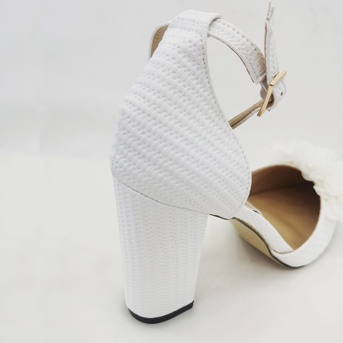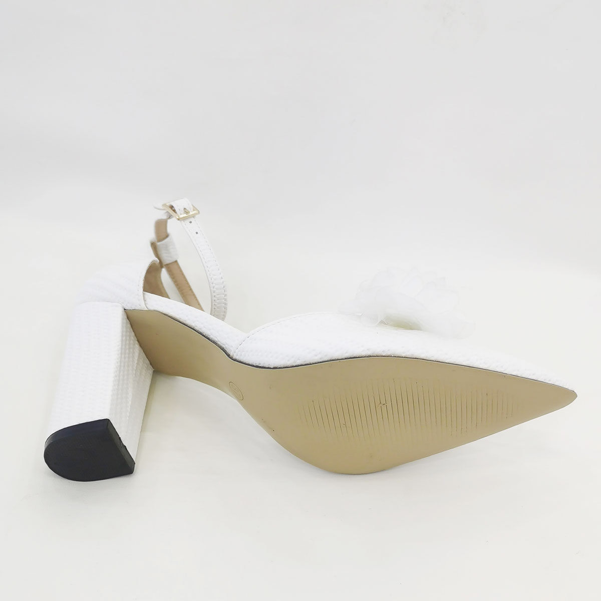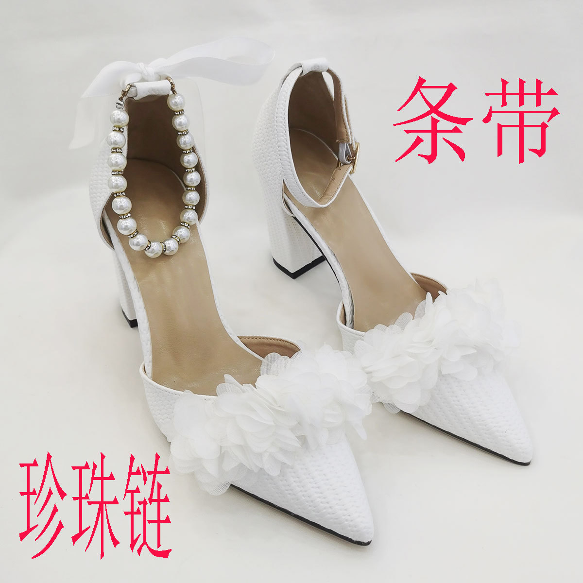 흰색 뾰족한 우아한 중공 여성 하이힐 샌들 간단한 단색 웨딩 파티 하이힐 펄 체인 꽃스토어 가기