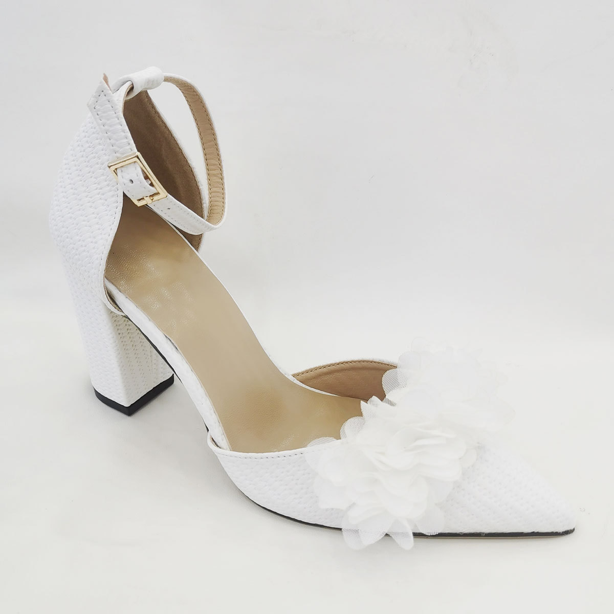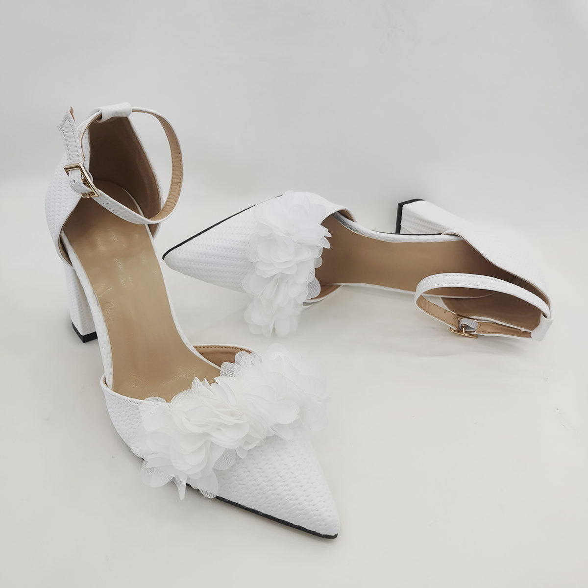 흰색 뾰족한 우아한 중공 여성 하이힐 샌들 간단한 단색 웨딩 파티 하이힐 펄 체인 꽃