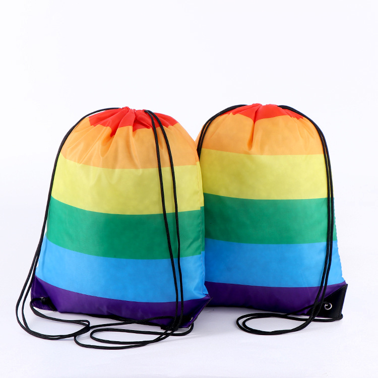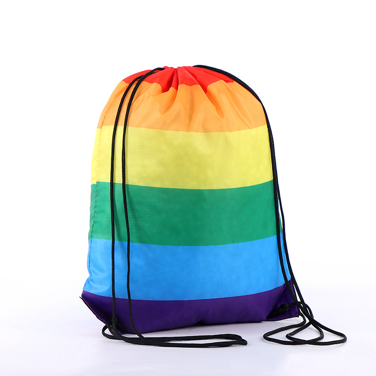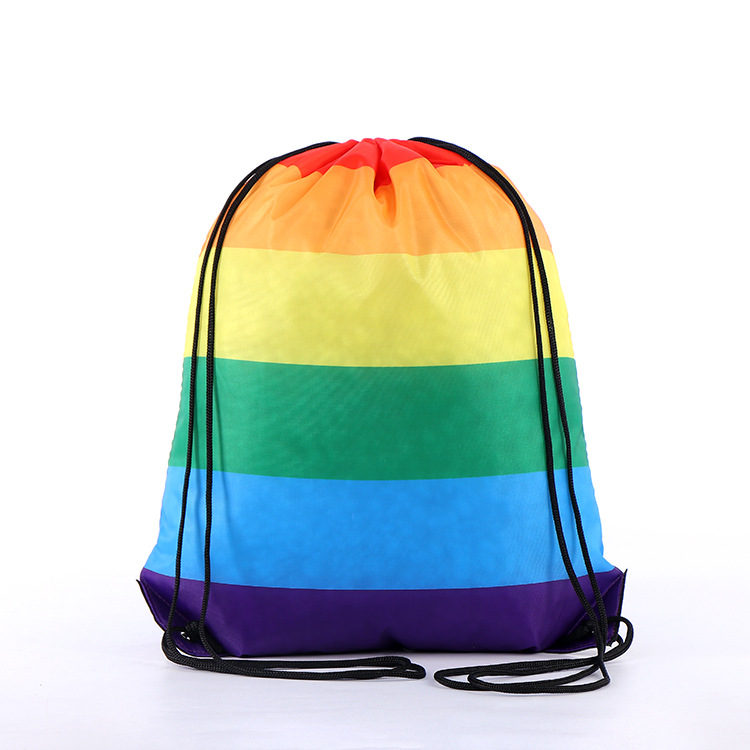 210d 폴리 에스터 레인보우 드로우 스트링 백 재고 승화 인쇄 백팩 국경 시리즈 다채로운 폴리 에스테르 드로우 스트링 포켓스토어 가기