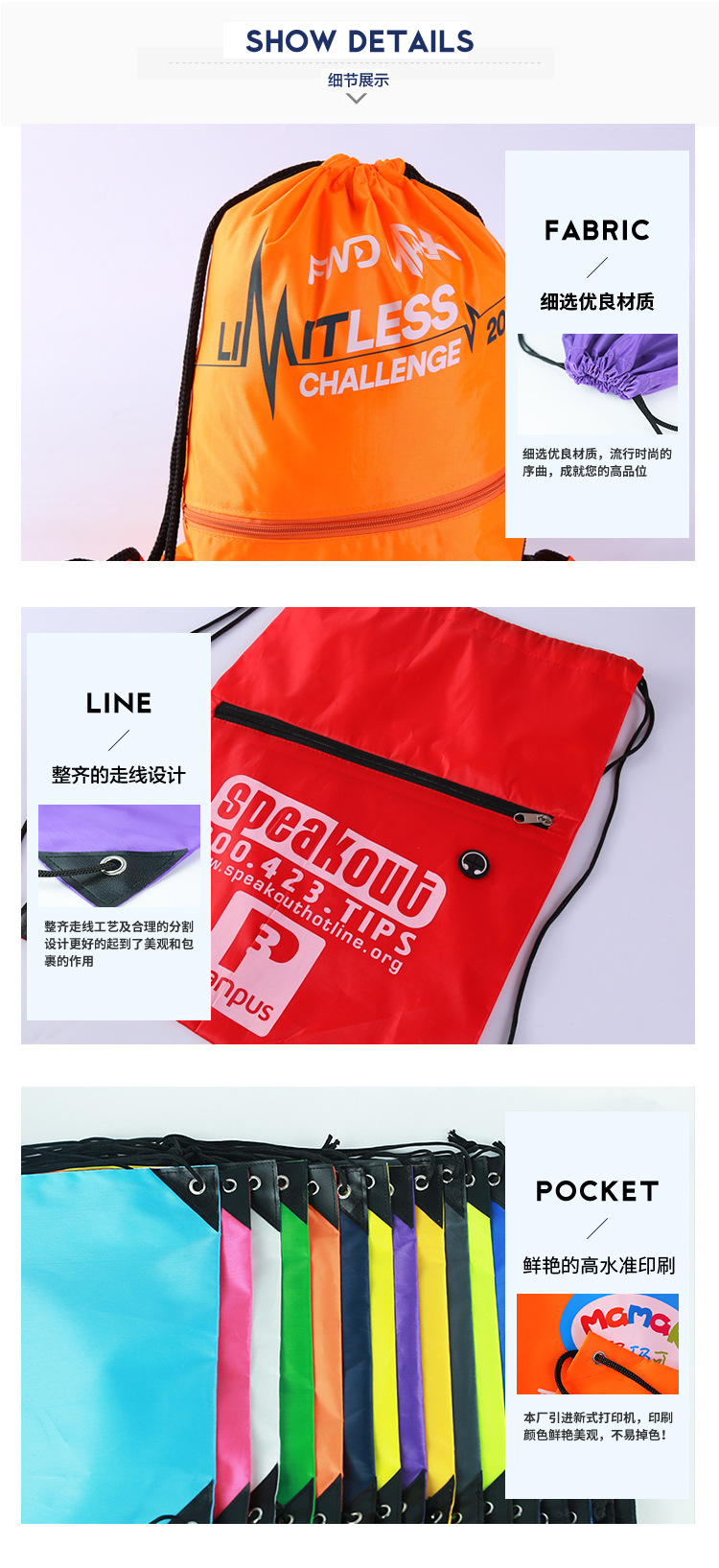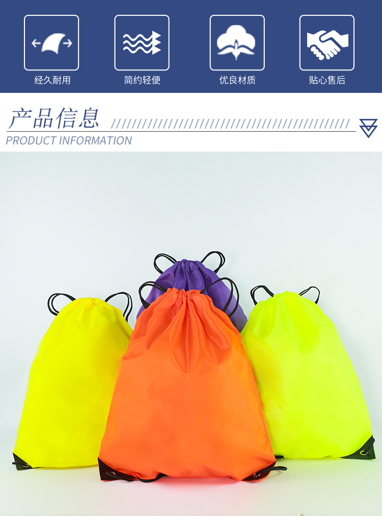 • 컬러 조임끈 포켓, 34*42cm, 210d 폴리에스테르 천