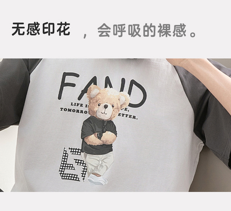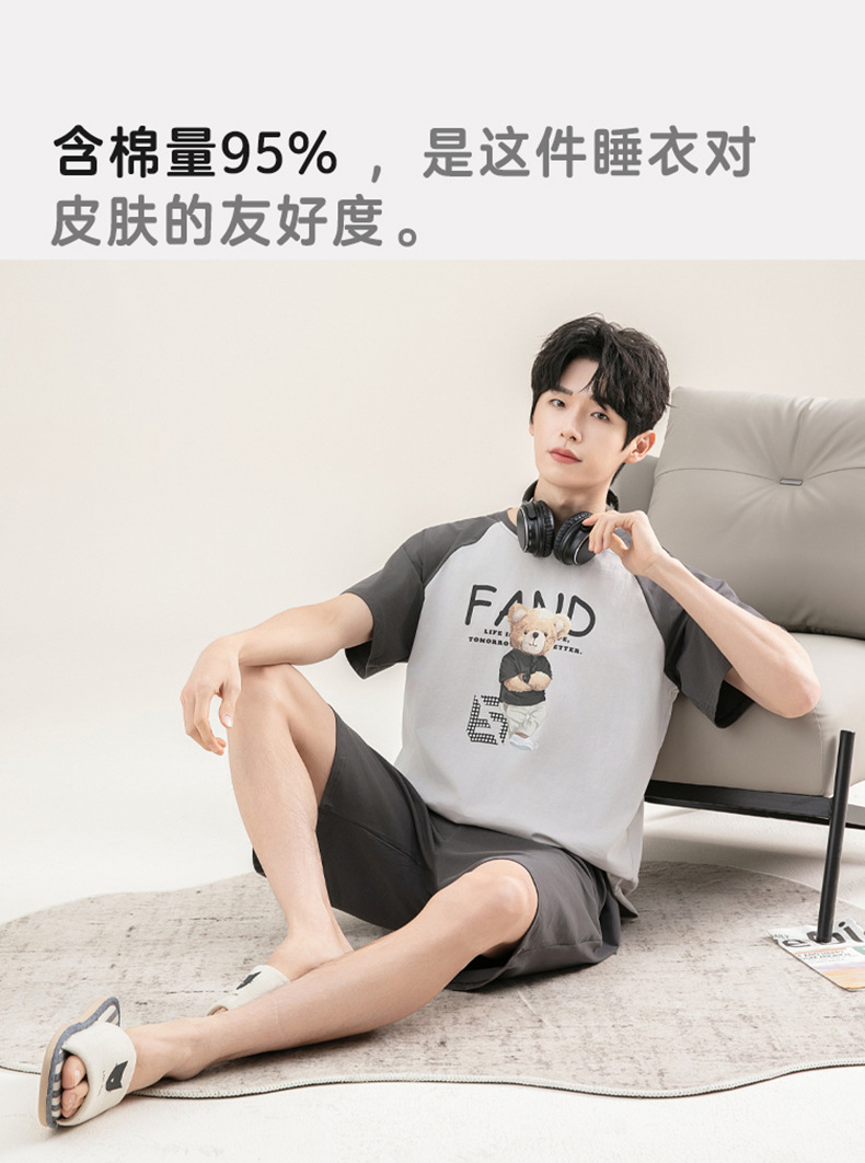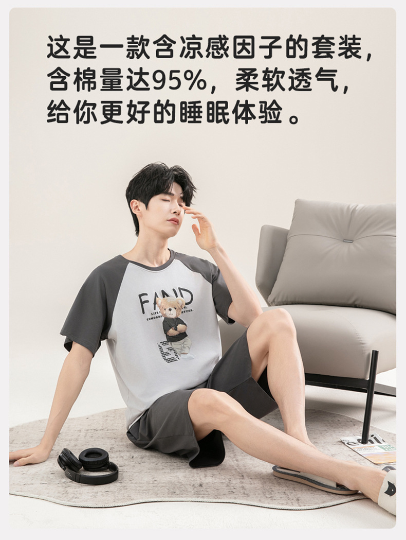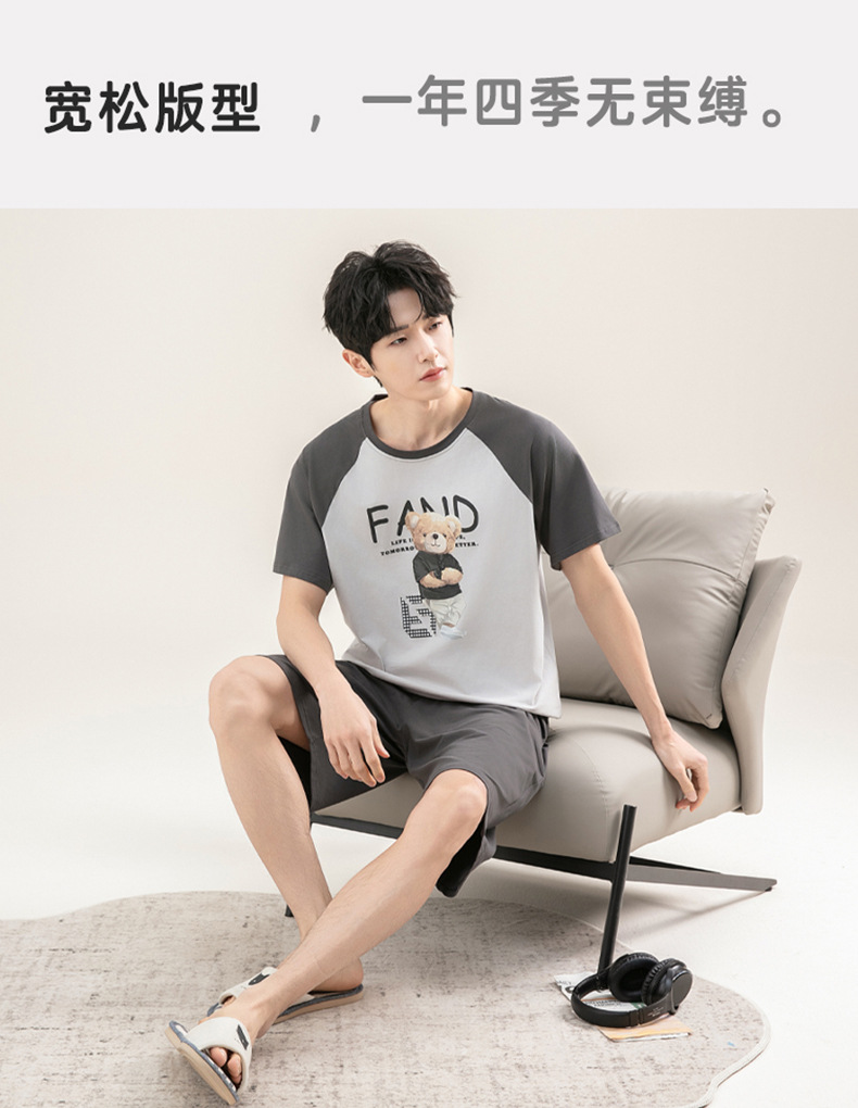 [시원한 느낌면] 남성면 잠옷 여름 대비 색 반팔 만화는 풀오버 세트 입을 수 있습니다스토어 가기