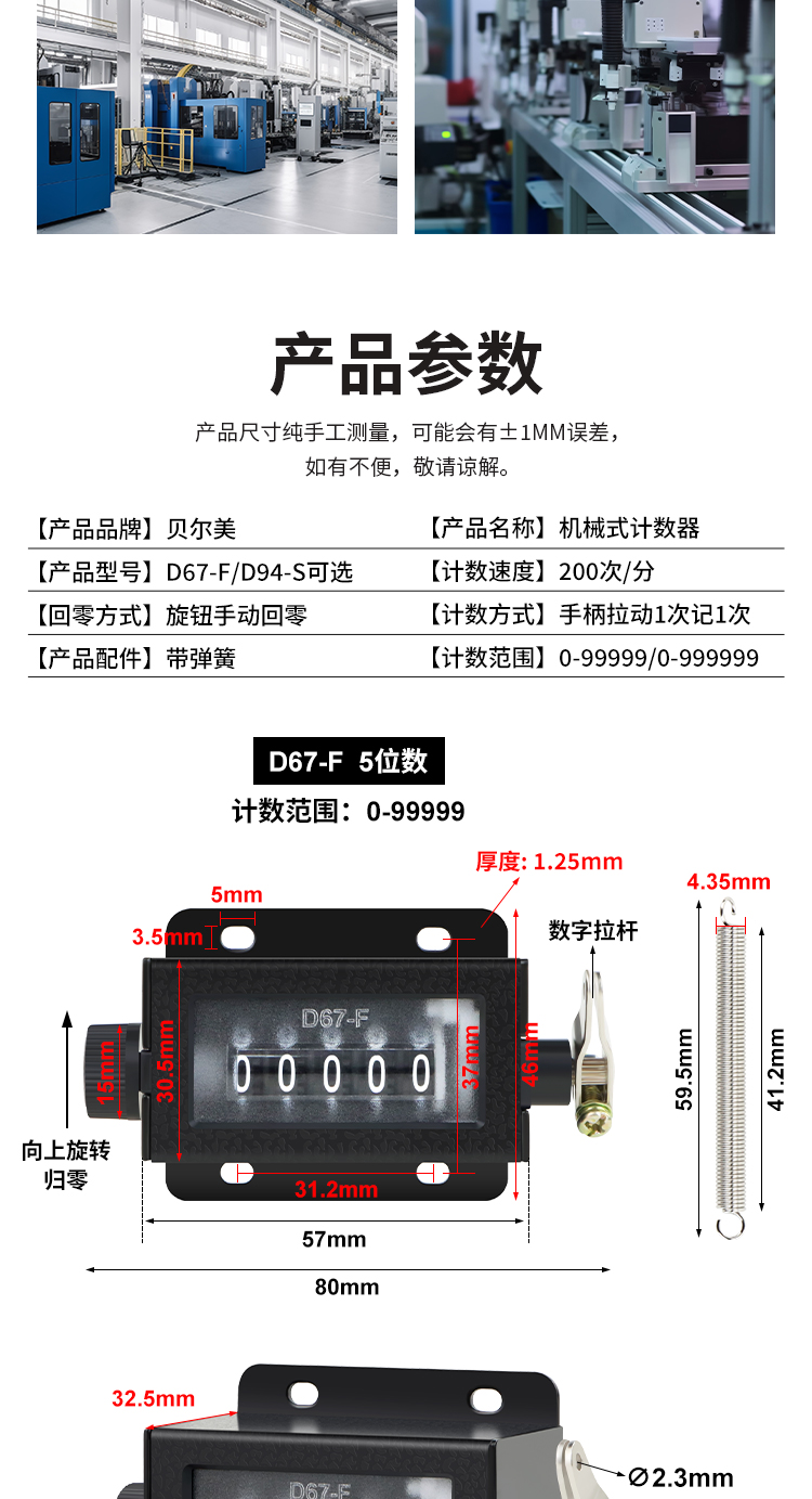 D94-S 기계식 카운터 수동 풀 타입 D67-F 산업용 펀치 카운터 계산 장치 6 자리 카운터