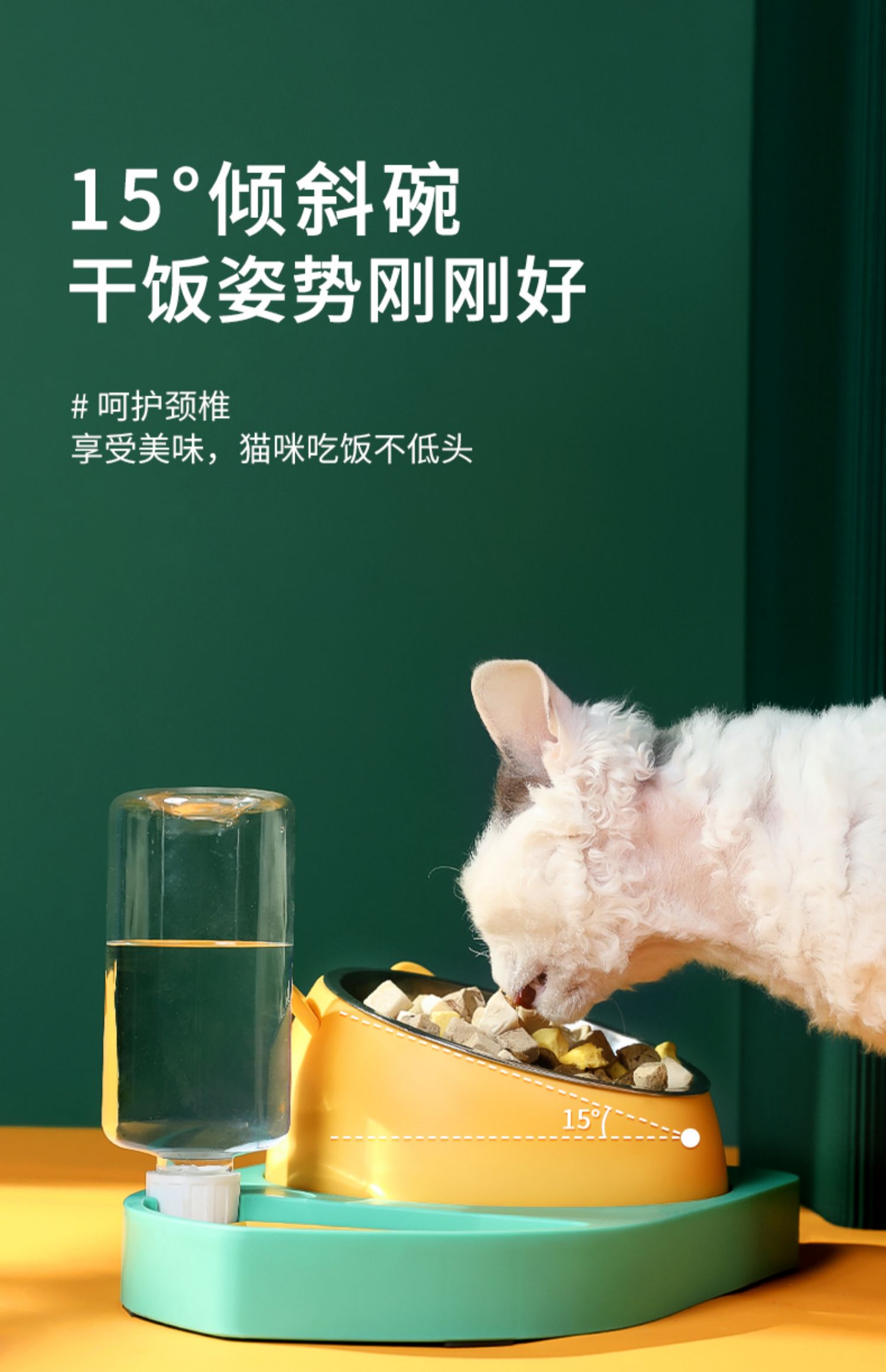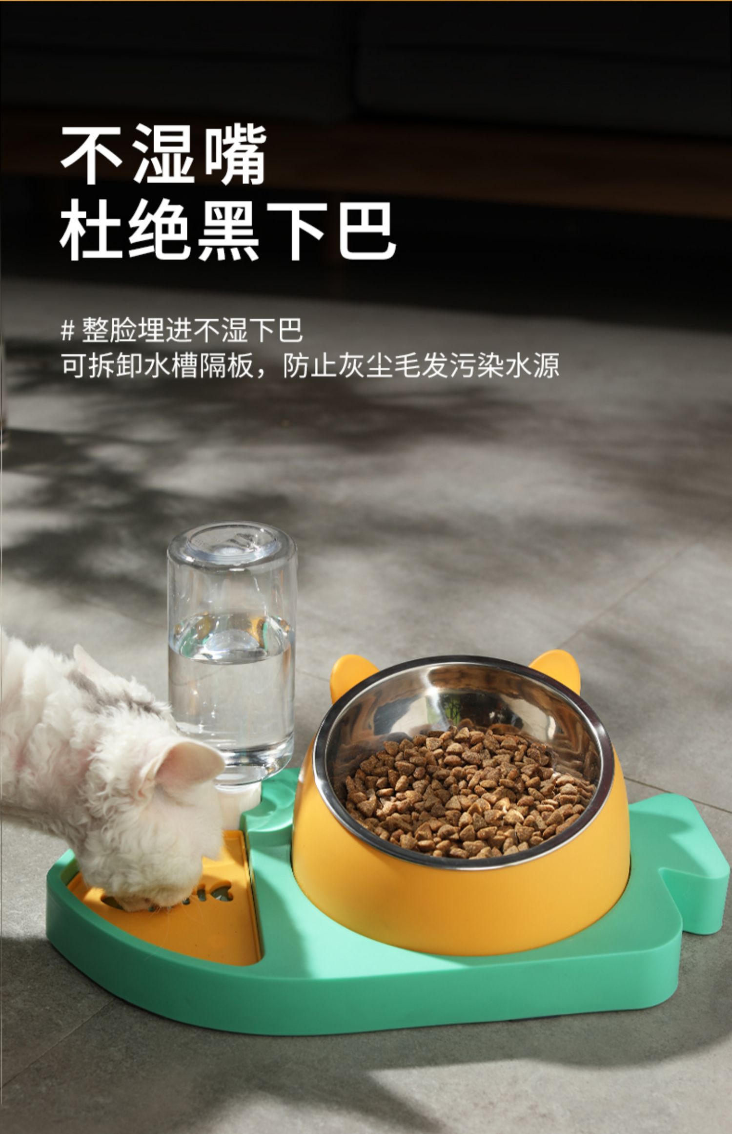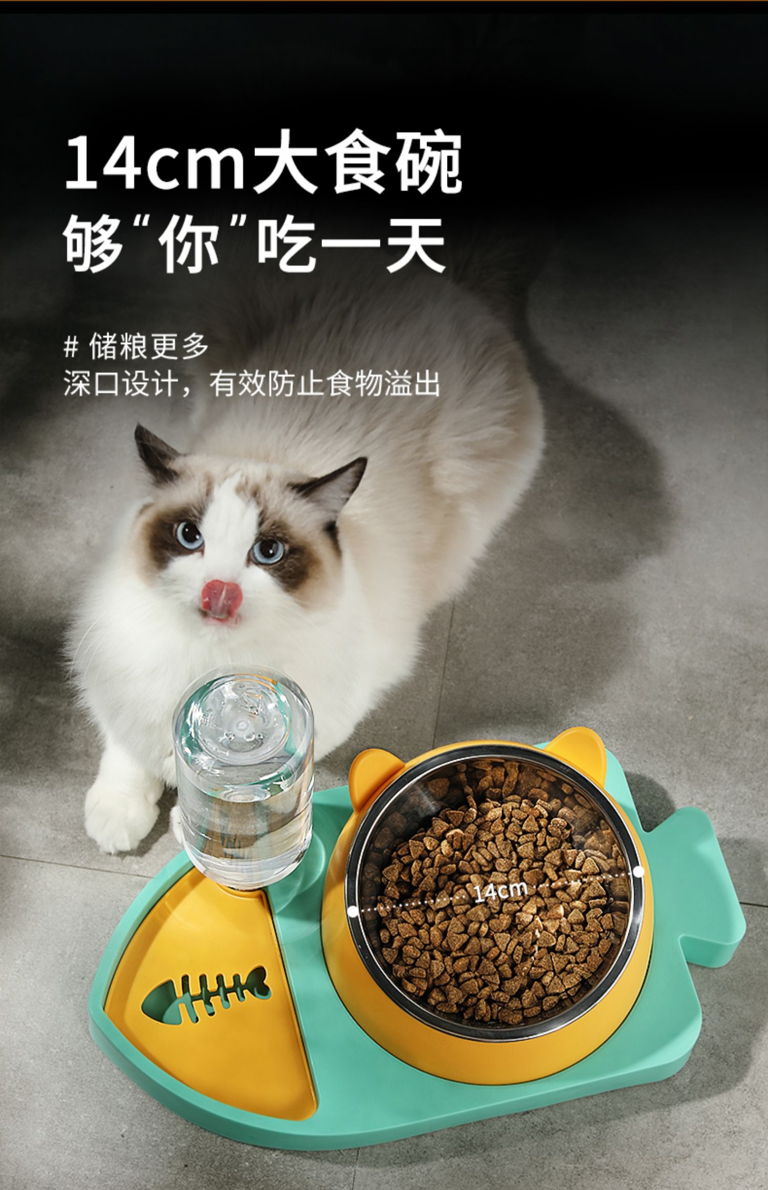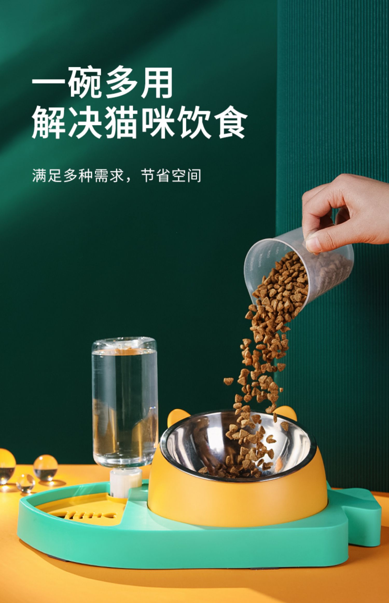 자동 보호 고양이 분지 음식 분지 물 그릇 고양이 음식 분지 개 분지 개 그릇 자궁 경부 척추 그릇 마시는 애완 동물 고양이 그릇 더블 그릇 mi