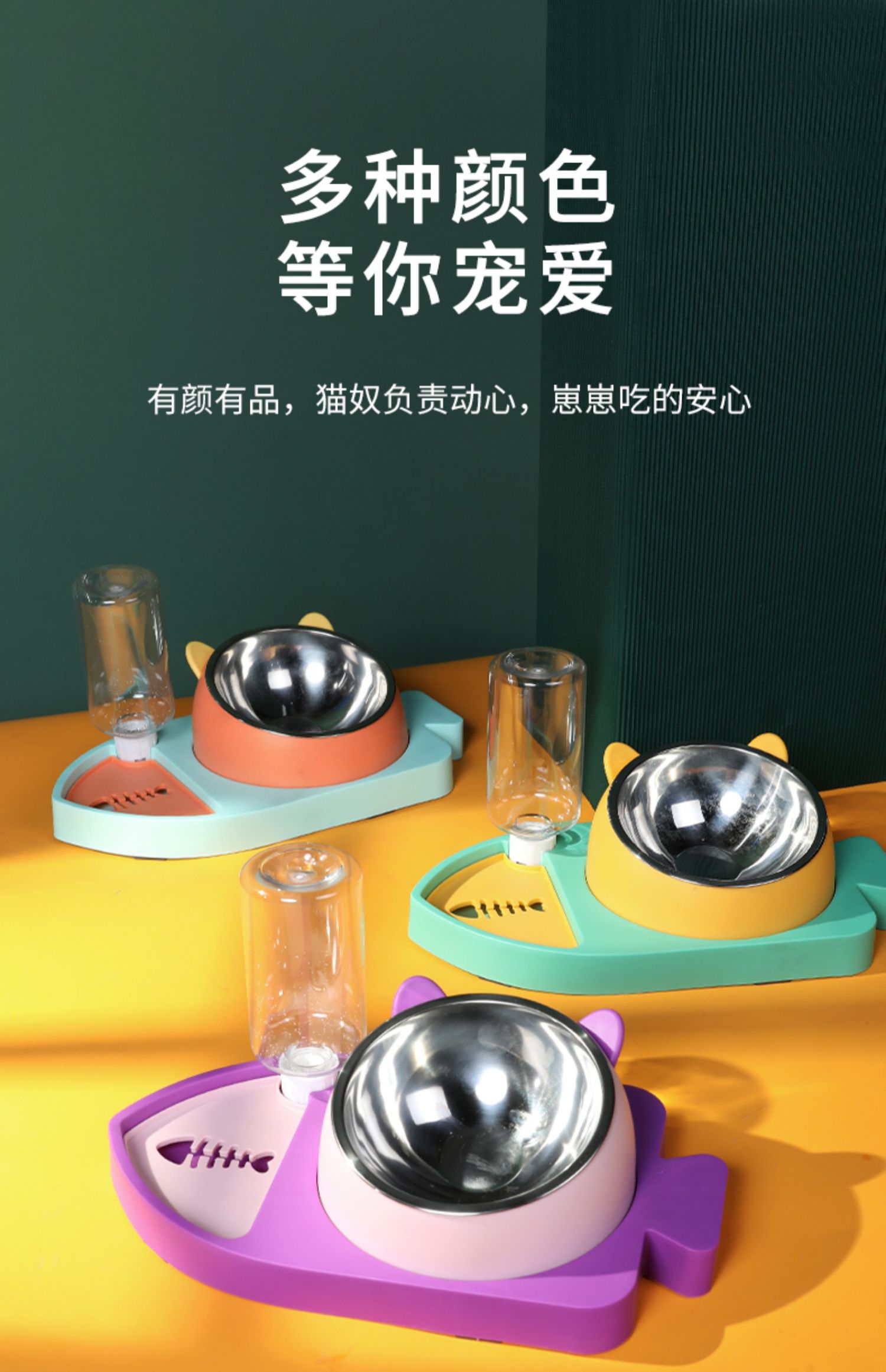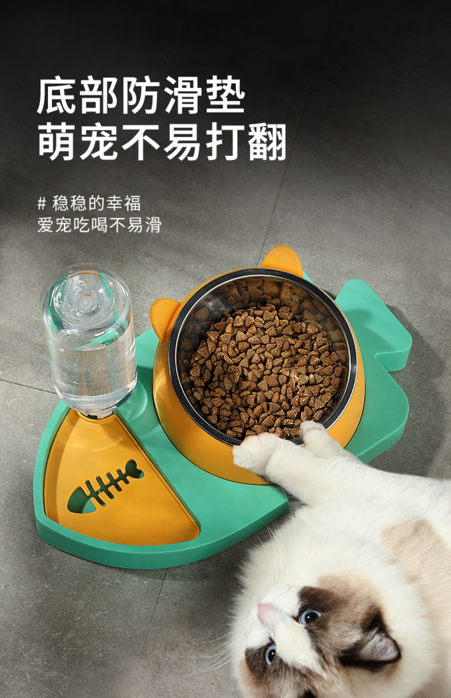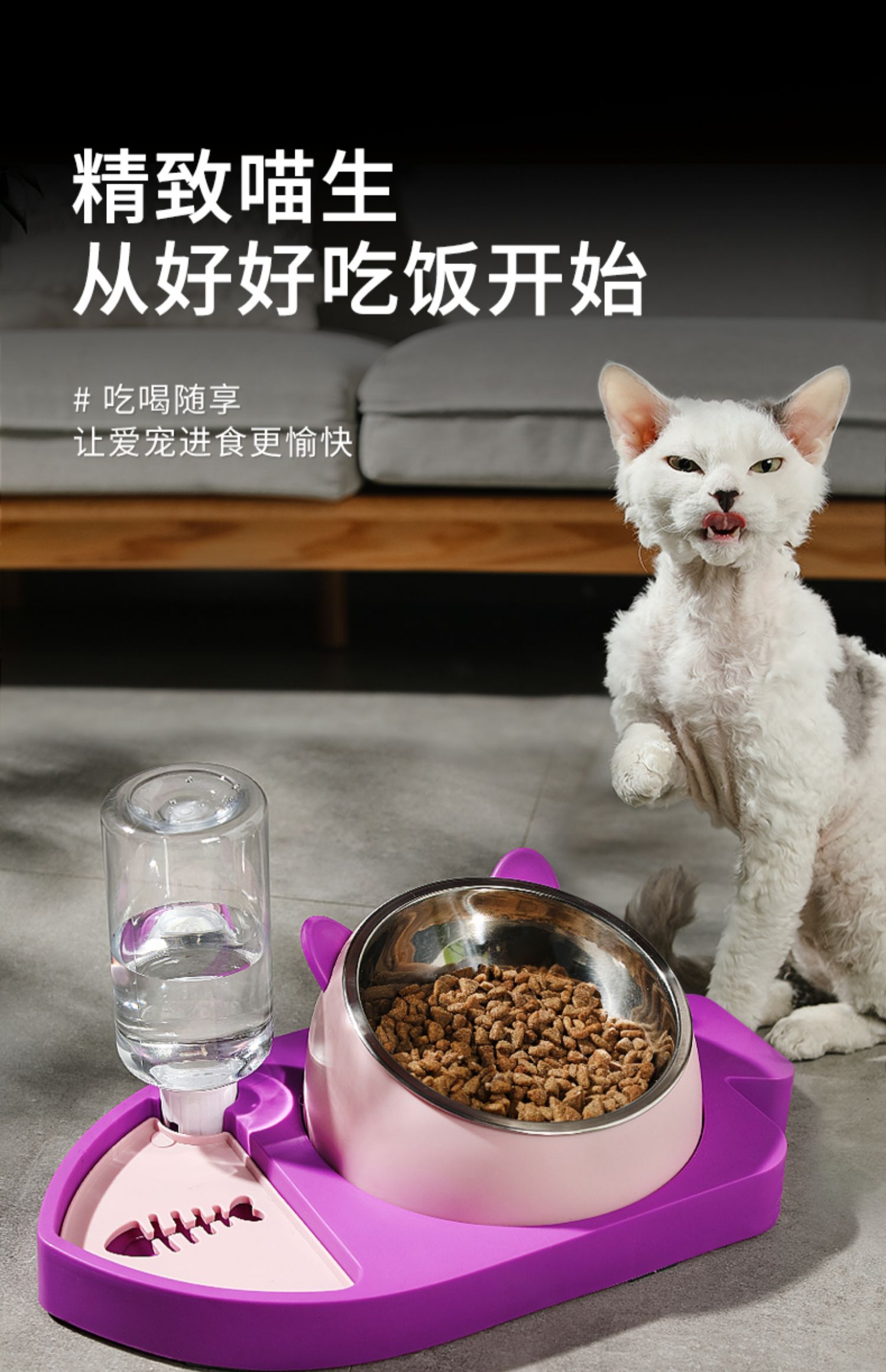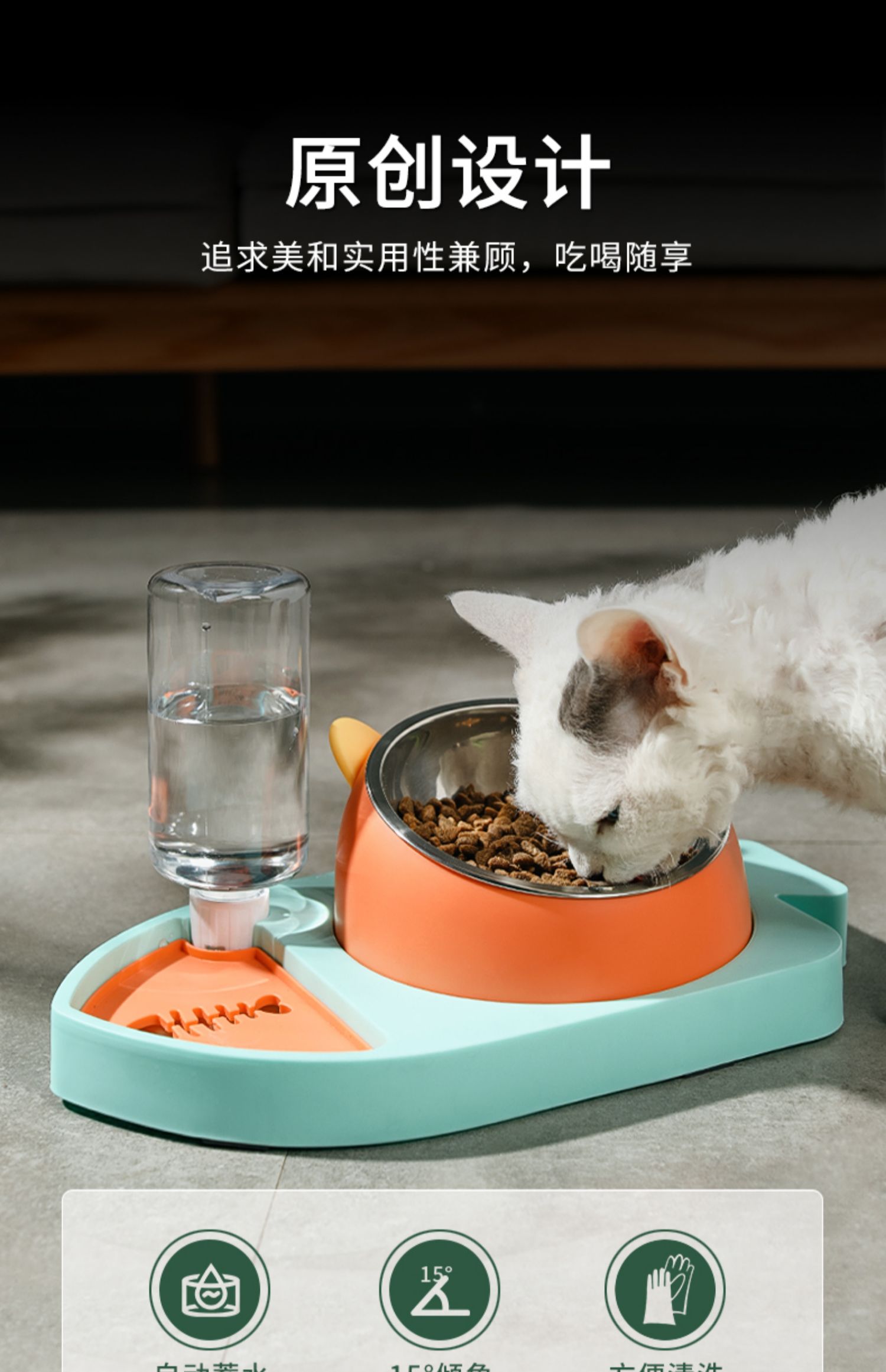 자동 보호 고양이 분지 음식 분지 물 그릇 고양이 음식 분지 개 분지 개 그릇 자궁 경부 척추 그릇 마시는 애완 동물 고양이 그릇 더블 그릇 mi
