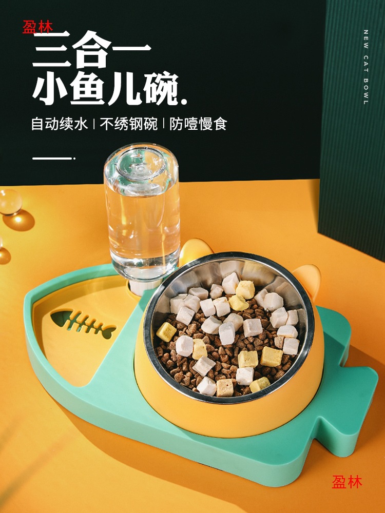 자동 보호 고양이 분지 음식 분지 물 그릇 고양이 음식 분지 개 분지 개 그릇 자궁 경부 척추 그릇 마시는 애완 동물 고양이 그릇 더블 그릇 mi스토어 가기