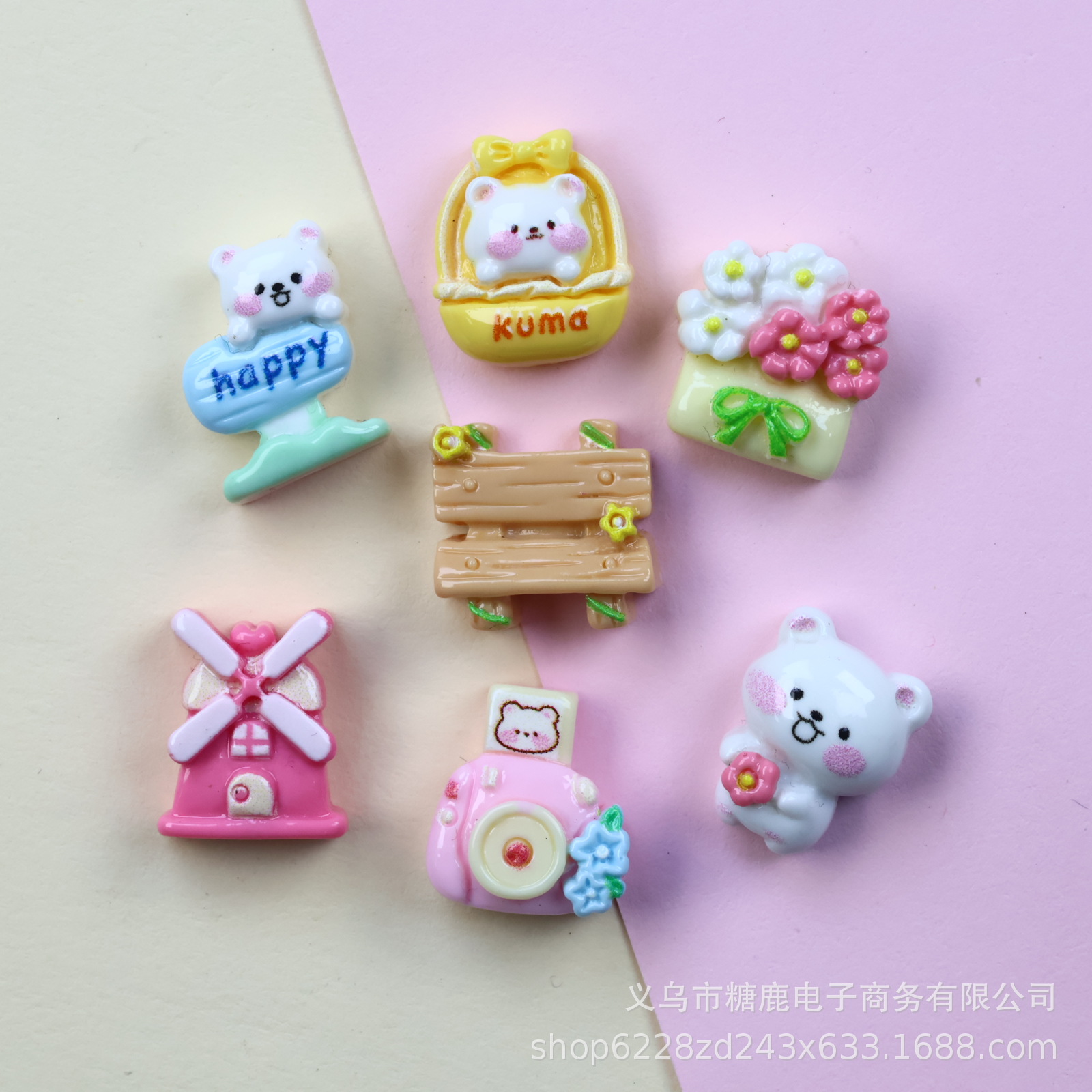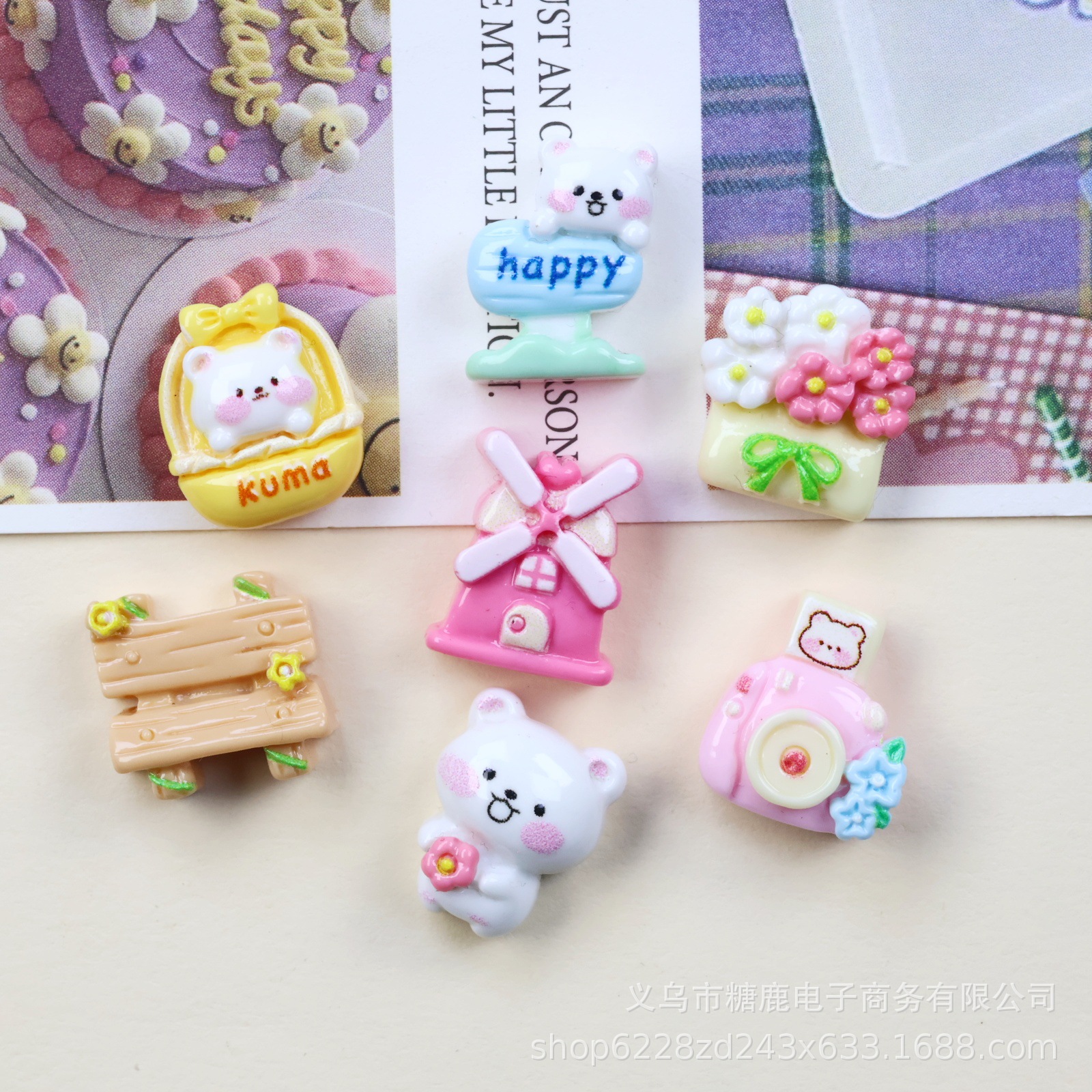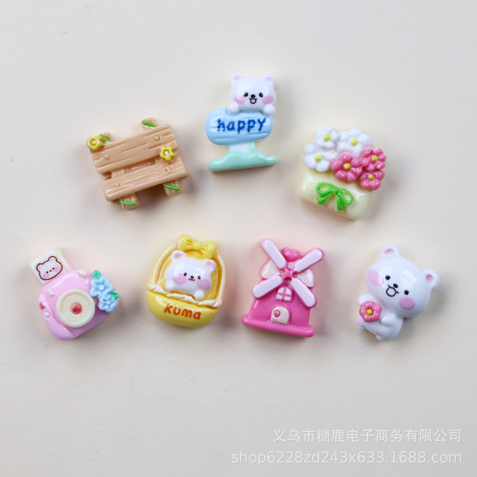 미니 봄 나들이 곰 풍차 시리즈 수지 액세서리 크림 접착제 네일 아트 머리핀 헤어 로프 그리퍼 장식품 나막신