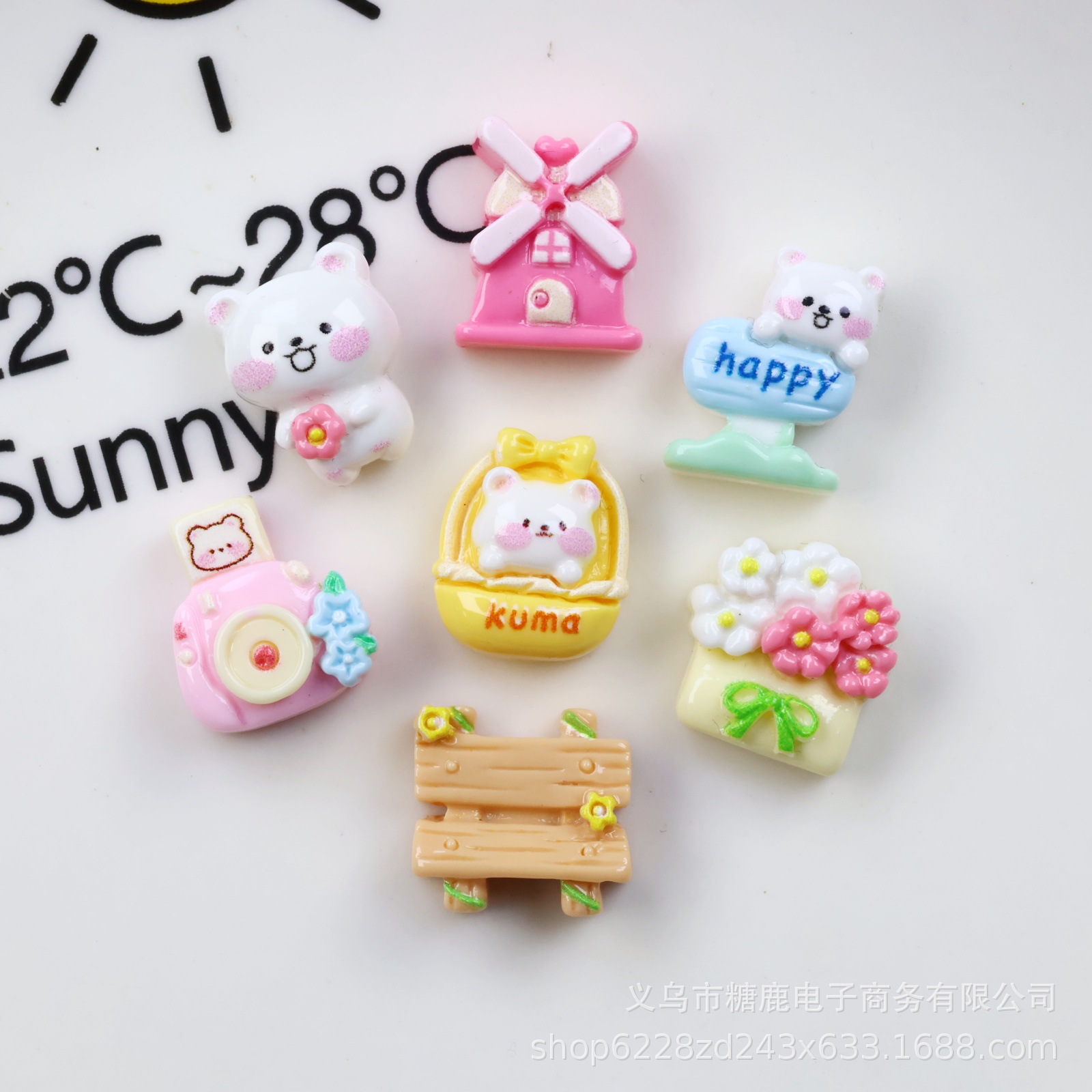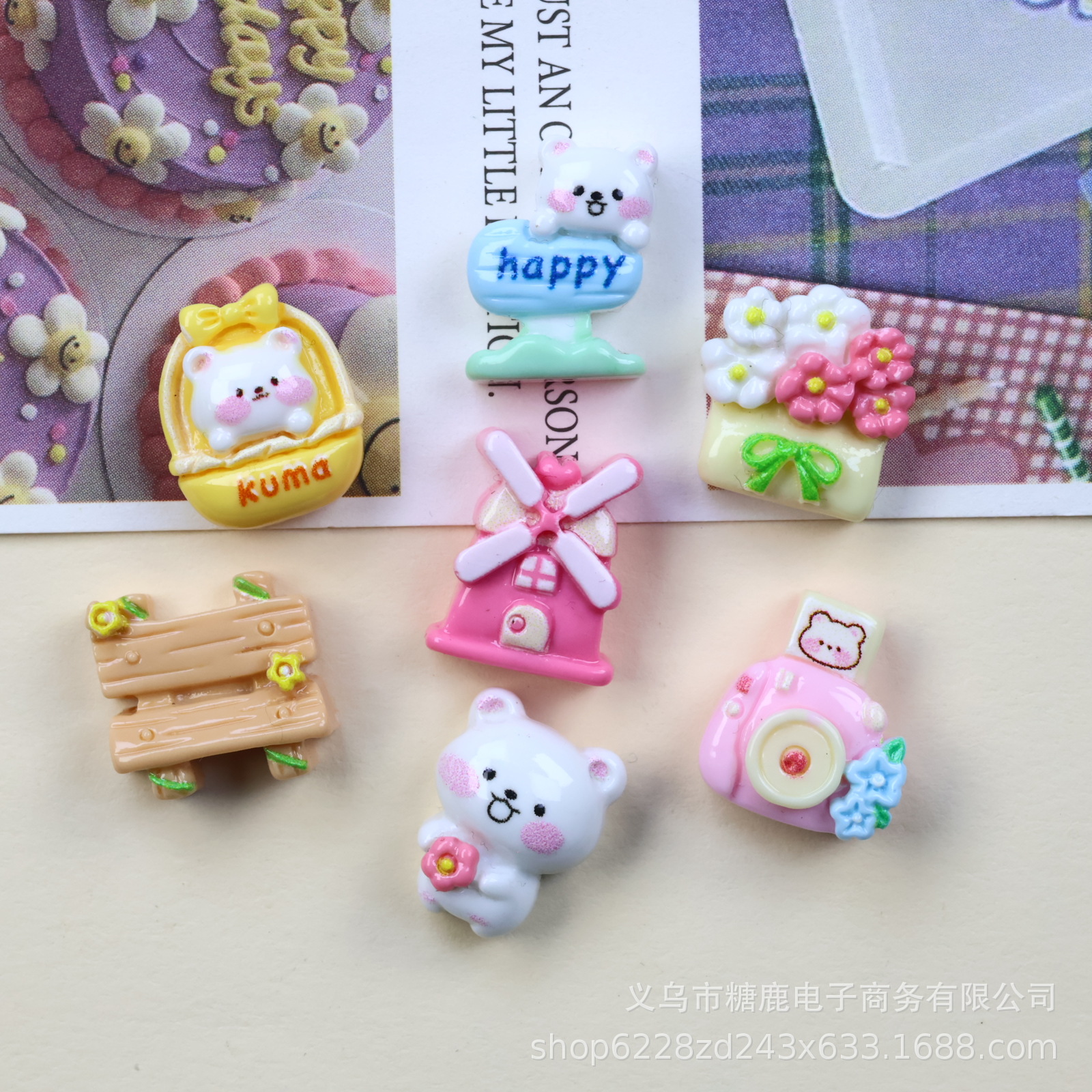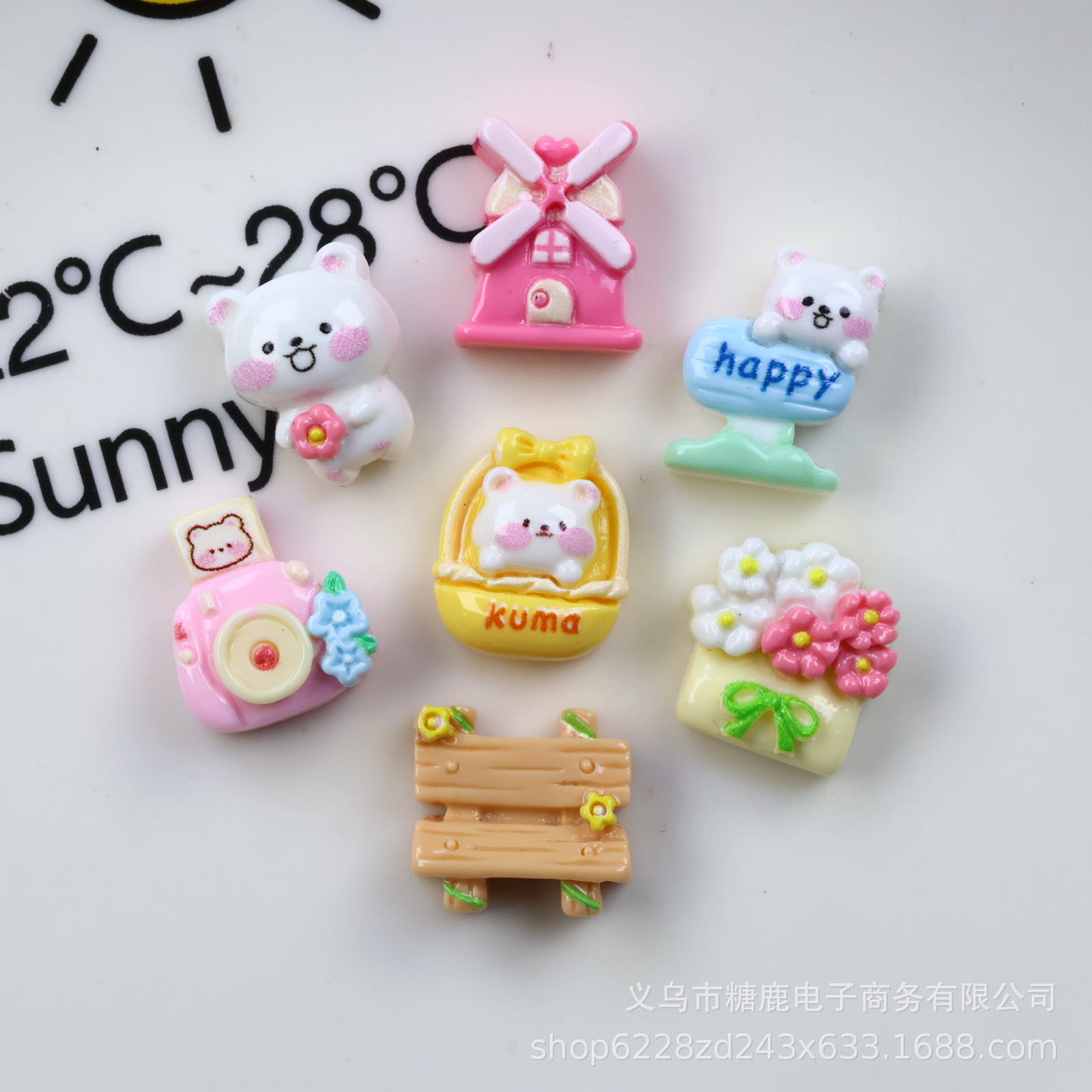 미니 봄 나들이 곰 풍차 시리즈 수지 액세서리 크림 접착제 네일 아트 머리핀 헤어 로프 그리퍼 장식품 나막신