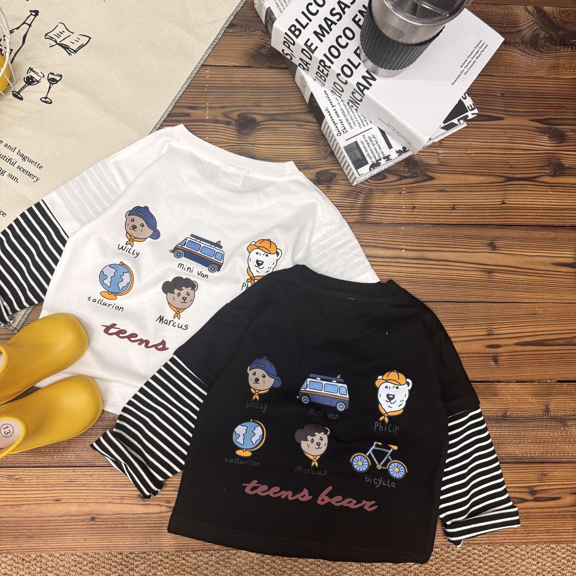 TikTok 폭발 소년 긴팔 티셔츠 봄과 가을 새로운 만화 어린이 자켓 소녀 아기 옷 국경 독점