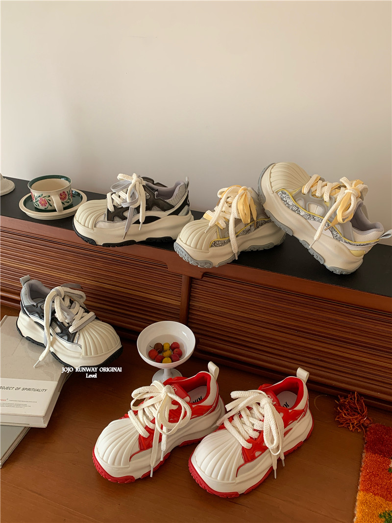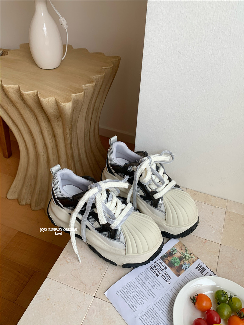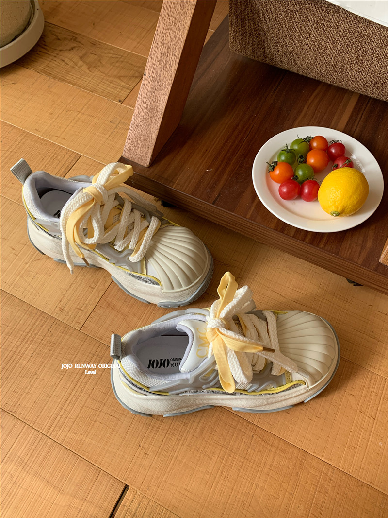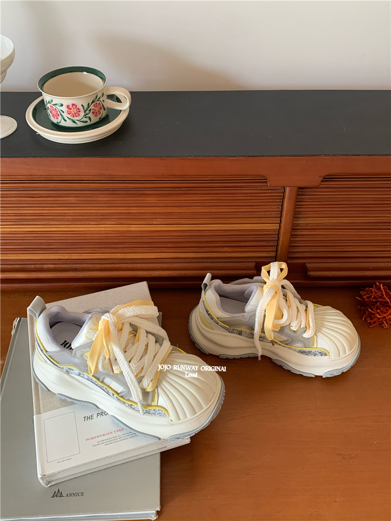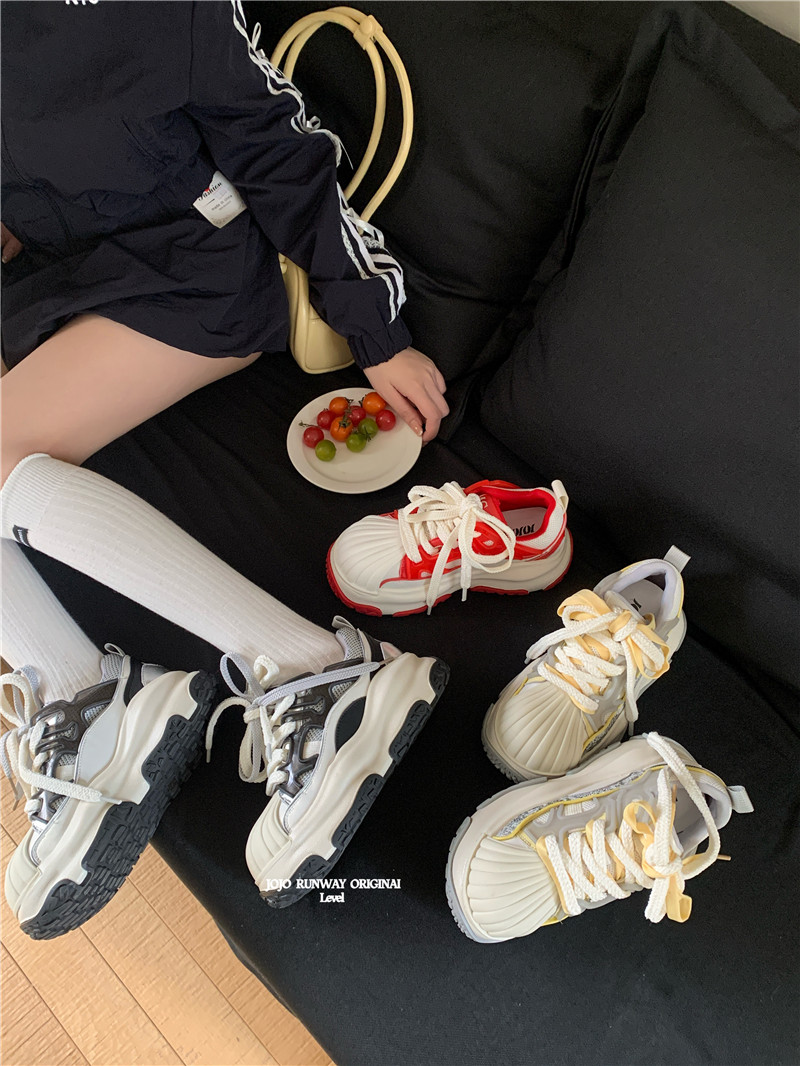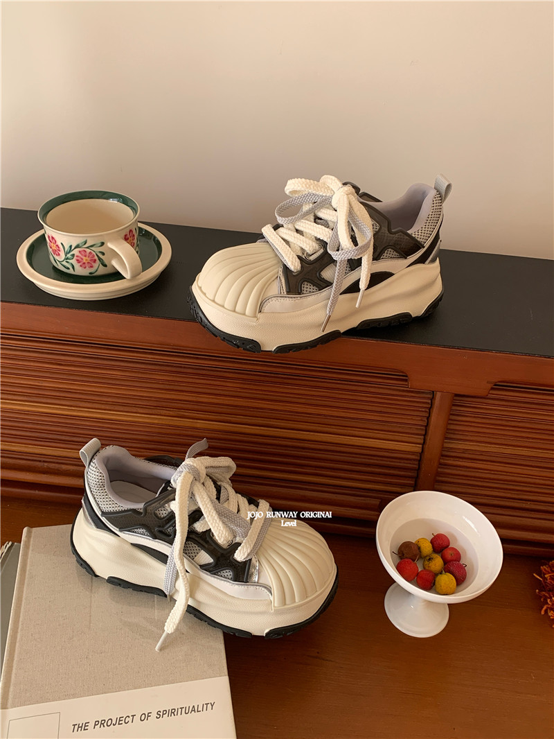 플랫폼 케이크 두꺼운 밑창 쉘 헤드 캐주얼 신발 여성 신발 2025 봄과 여름 새로운 작은 높이 보드 신발 레이스 업 운동화