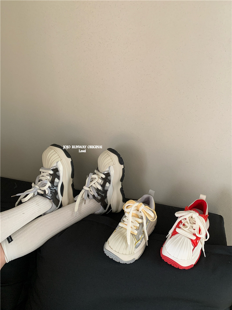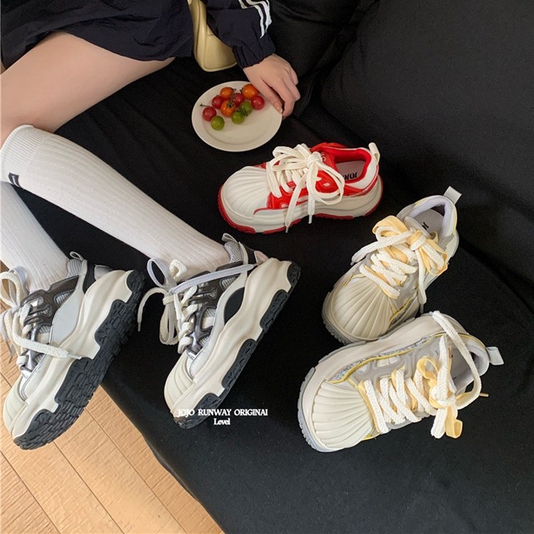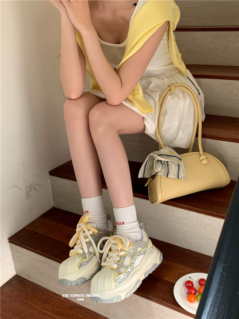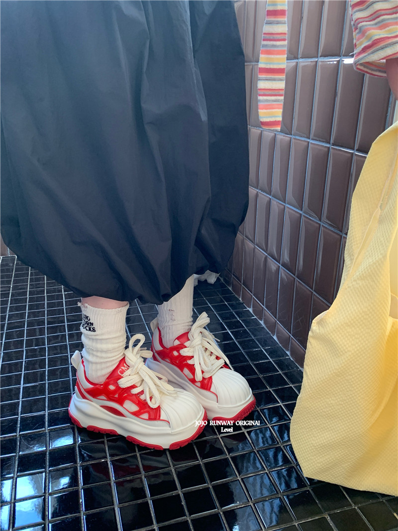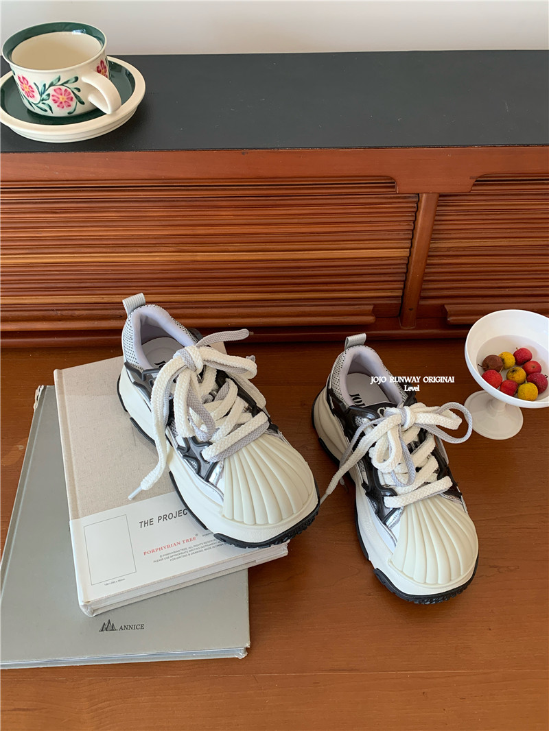 플랫폼 케이크 두꺼운 밑창 쉘 헤드 캐주얼 신발 여성 신발 2025 봄과 여름 새로운 작은 높이 보드 신발 레이스 업 운동화