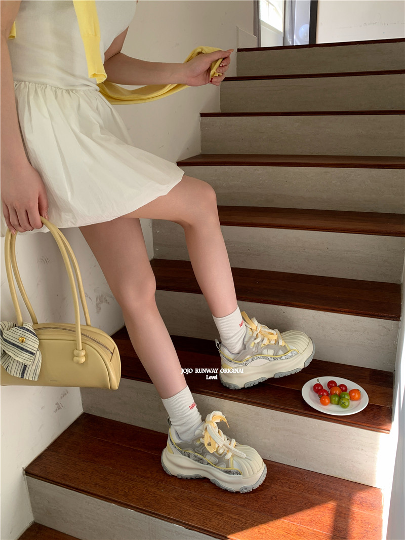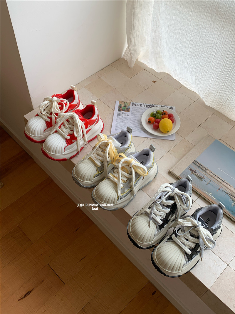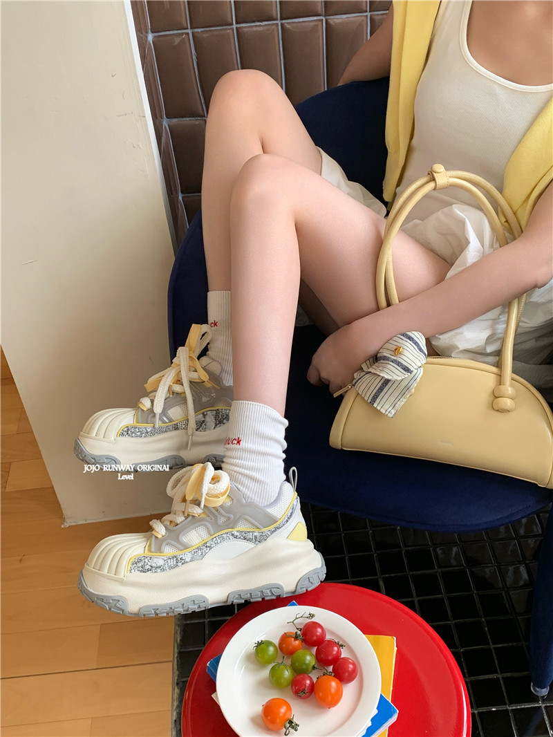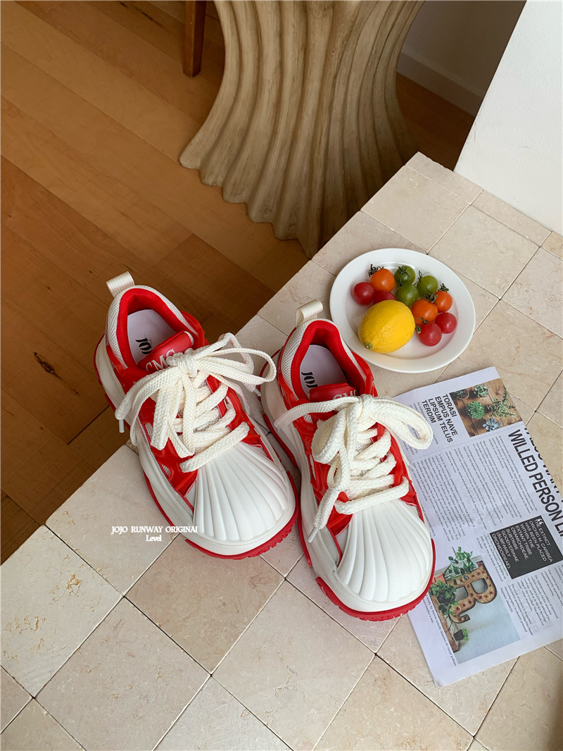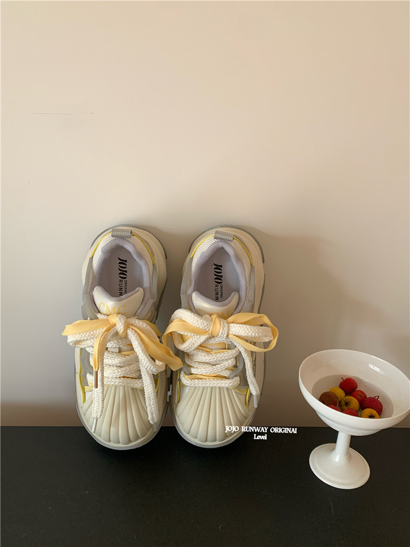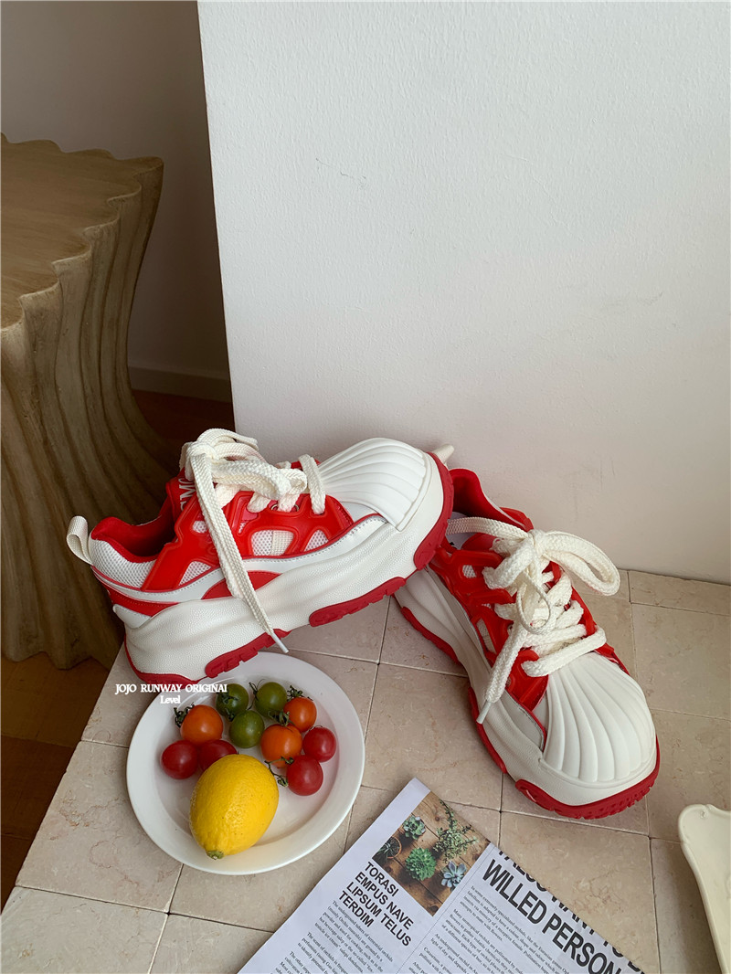 플랫폼 케이크 두꺼운 밑창 쉘 헤드 캐주얼 신발 여성 신발 2025 봄과 여름 새로운 작은 높이 보드 신발 레이스 업 운동화