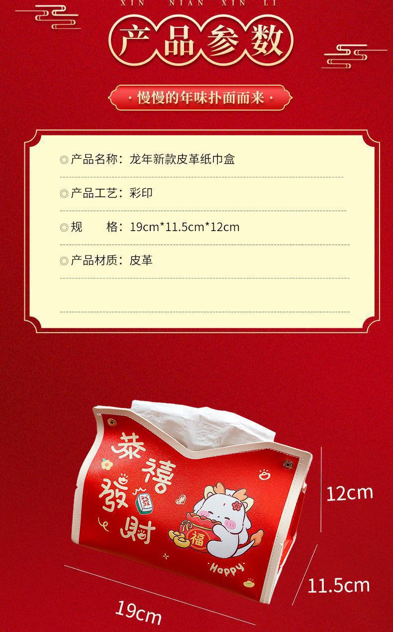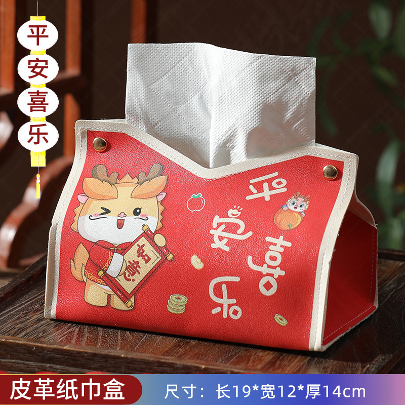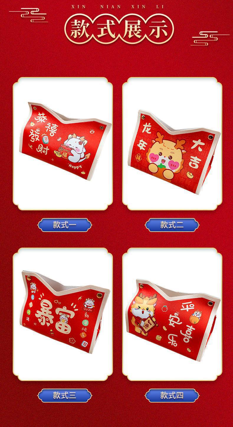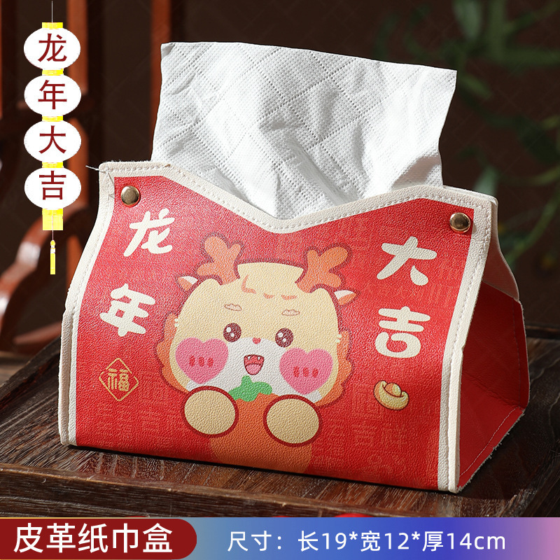2024 년 드래곤 신년 가죽 티슈 박스 크리에이티브 스타일 새해 맛 티슈 백 새해 축제 종이 보관 상자스토어 가기