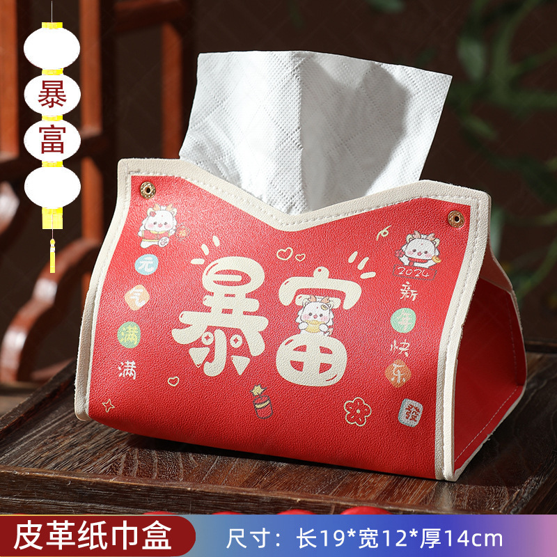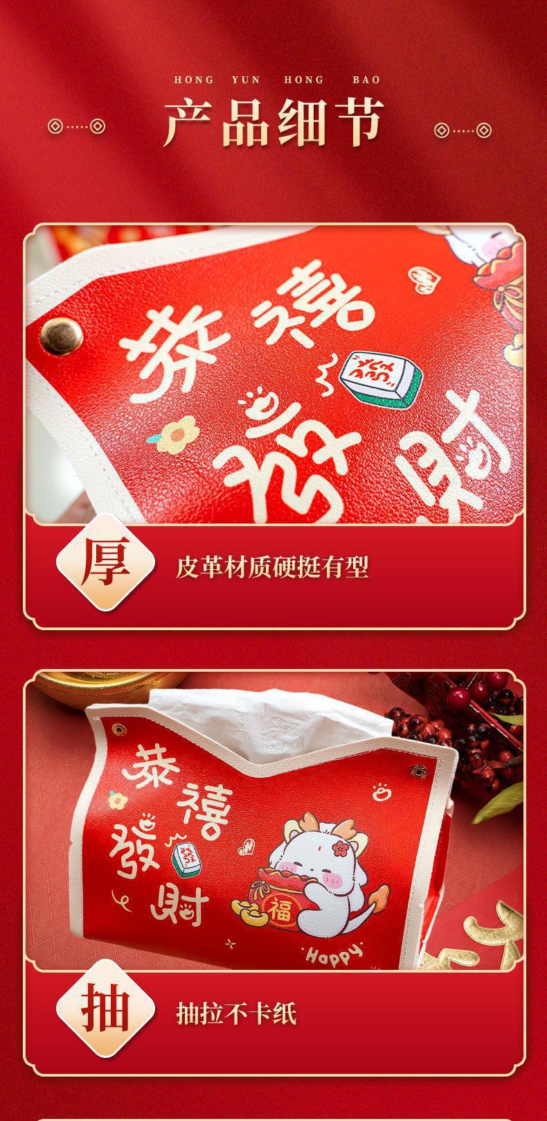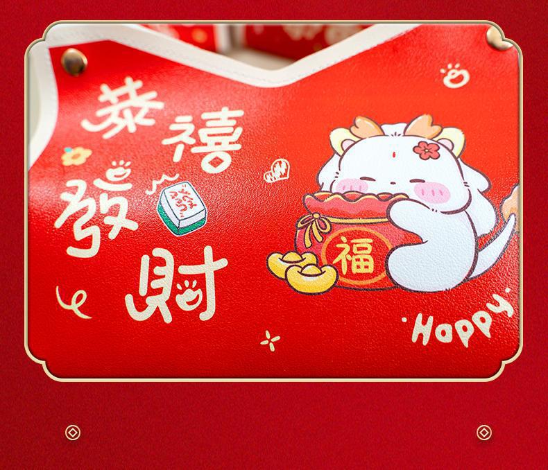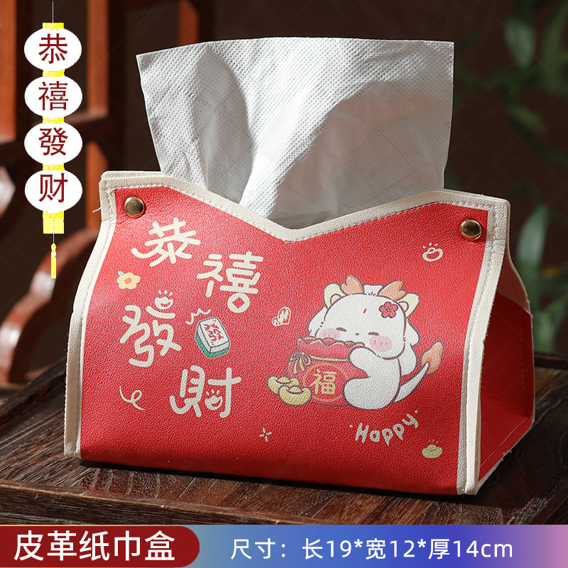 2024 년 드래곤 신년 가죽 티슈 박스 크리에이티브 스타일 새해 맛 티슈 백 새해 축제 종이 보관 상자스토어 가기