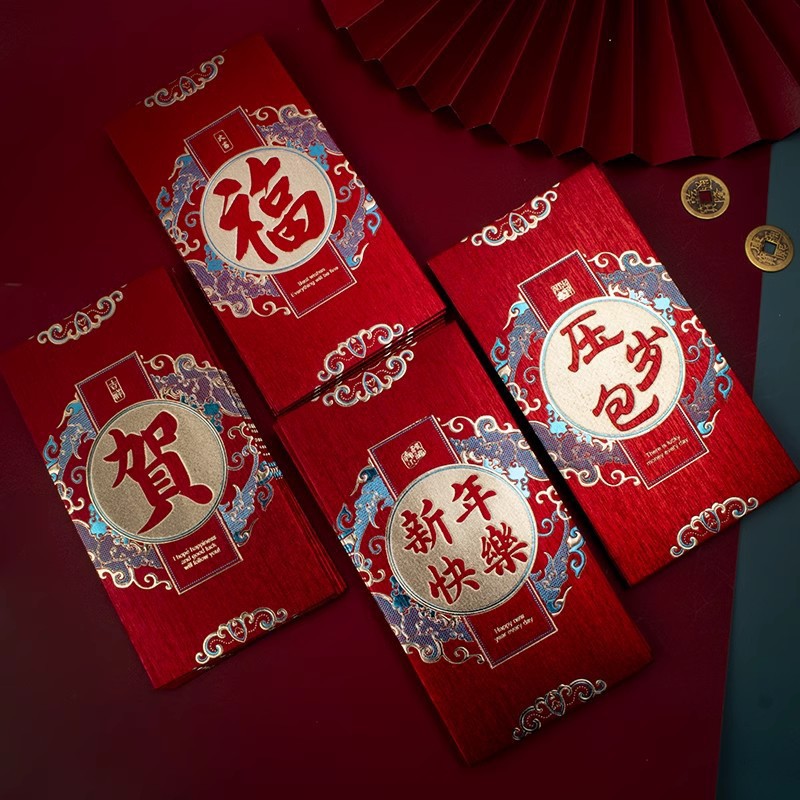 • 랜덤 패턴의 빨간 봉투 [브러쉬드 글리터 종이, 3가지 색상] 천 위안 빨간 봉투 6팩