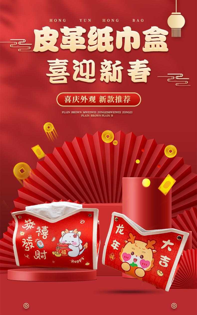 2024 년 드래곤 신년 가죽 티슈 박스 크리에이티브 스타일 새해 맛 티슈 백 새해 축제 종이 보관 상자