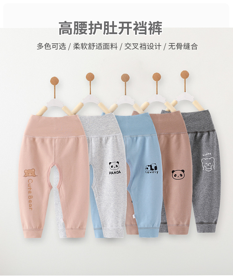 아기의 열린 긴 바지 아기의 높은 허리 배꼽 보호 바지 남성 및 여성 어린이 바지 긴 바지 순수 면화 보투 기저귀 뼈없는 바지