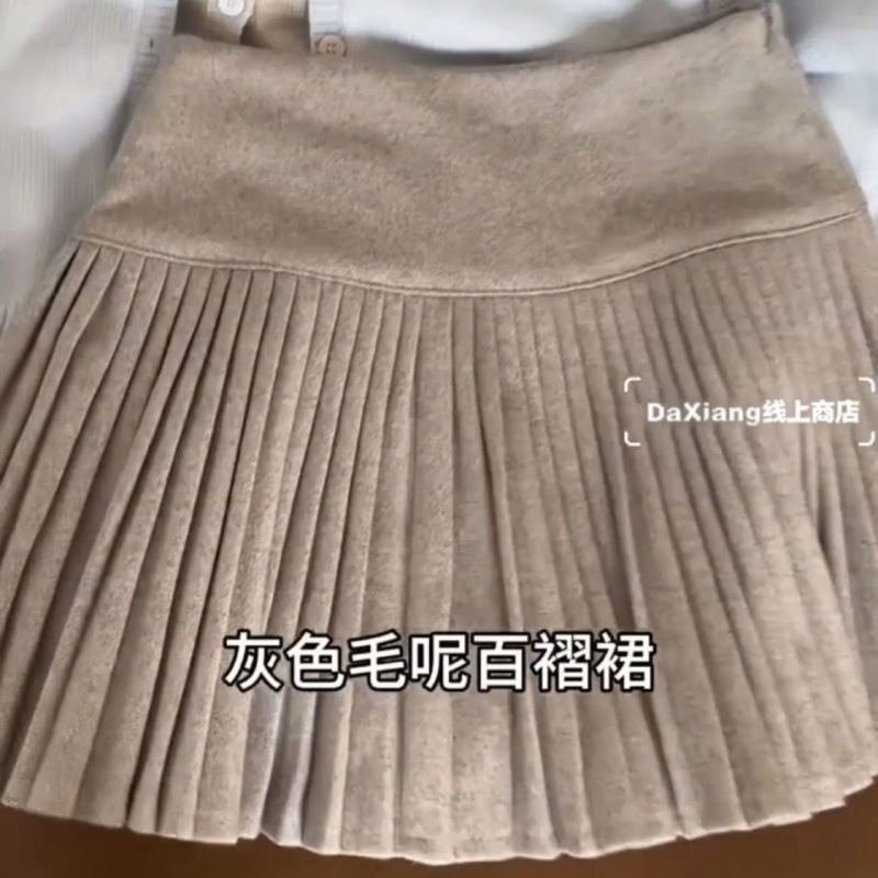 • 그레이 플리츠 스커트 [단품] 안감 사이드 지퍼