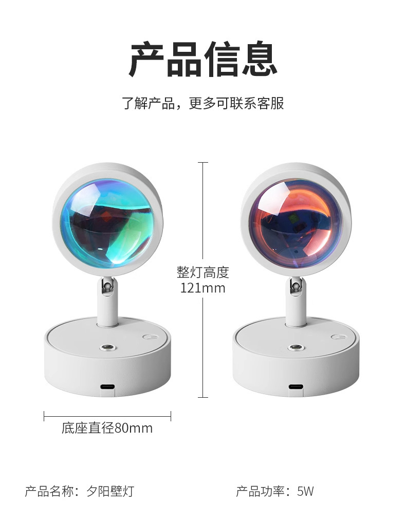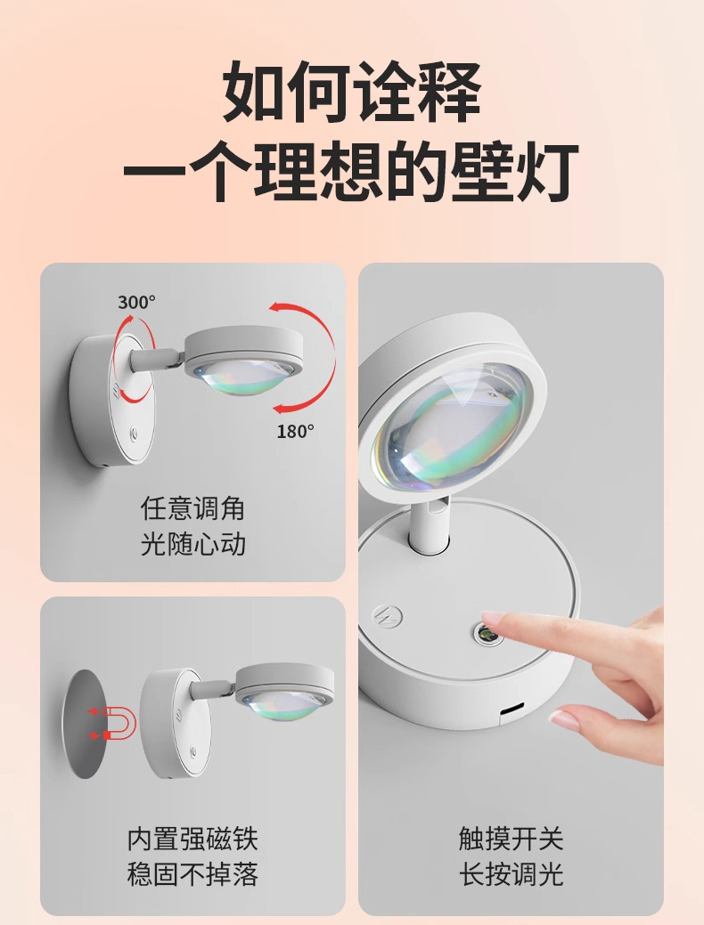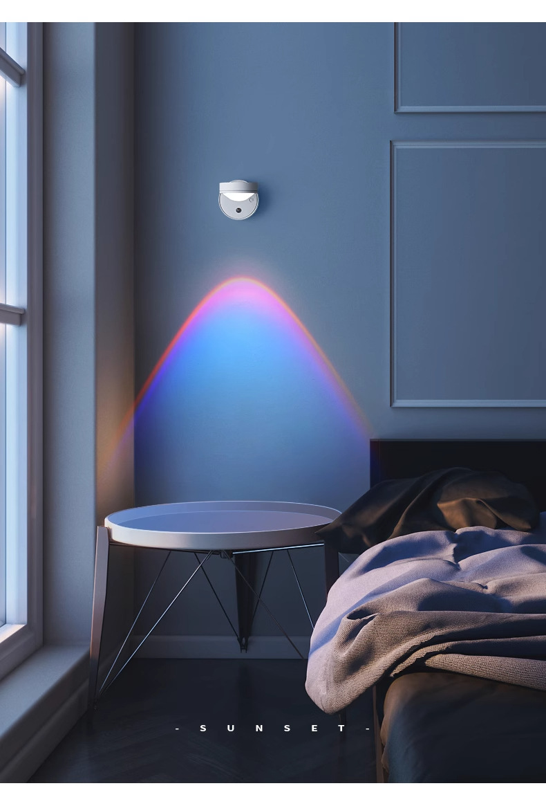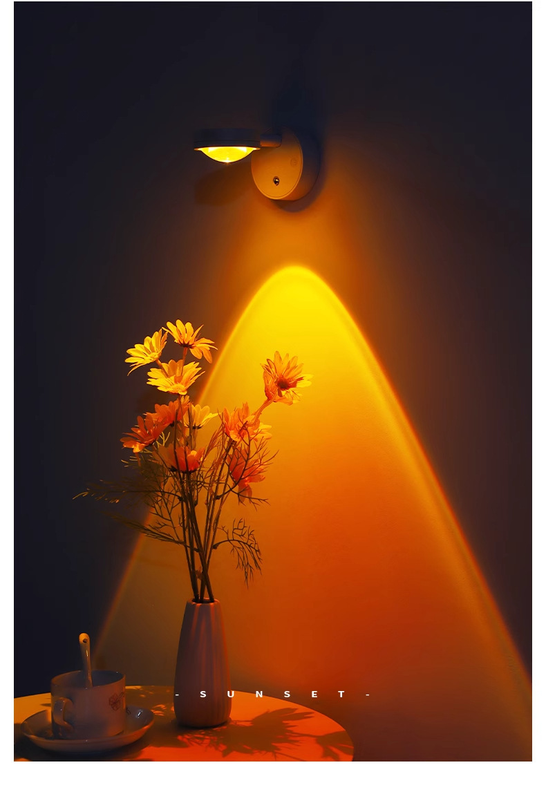 침대 옆 램프 침실용 무타공 선셋 레드 무벽걸이형 벽등 충전식 일몰 LED 램프 야간등 무타공