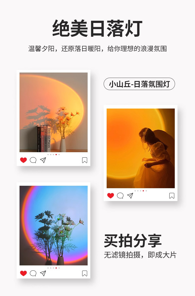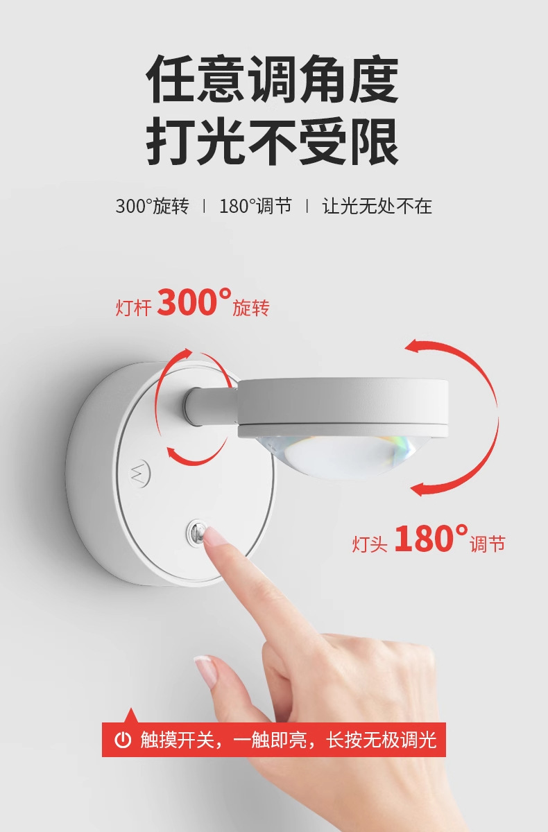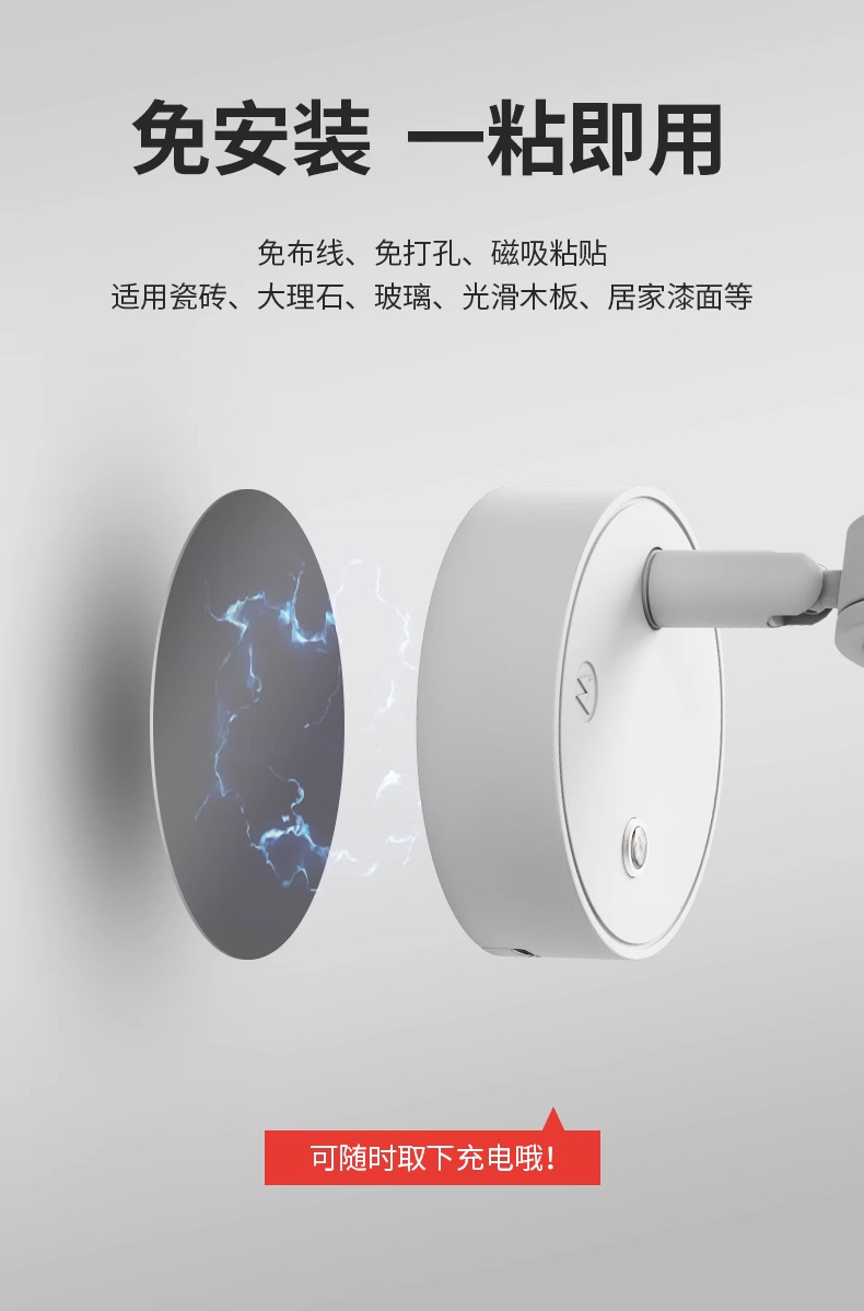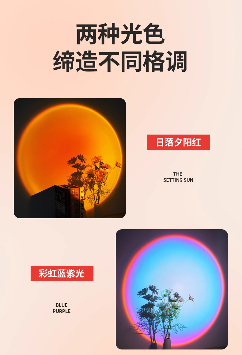 침대 옆 램프 침실용 무타공 선셋 레드 무벽걸이형 벽등 충전식 일몰 LED 램프 야간등 무타공