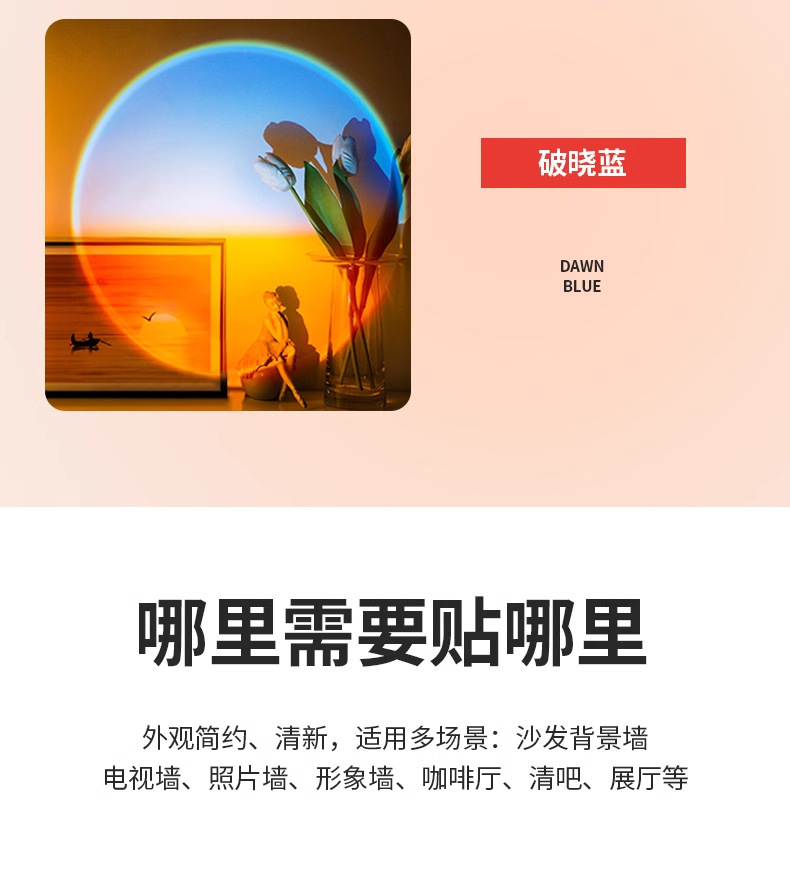 침대 옆 램프 침실용 무타공 선셋 레드 무벽걸이형 벽등 충전식 일몰 LED 램프 야간등 무타공스토어 가기
