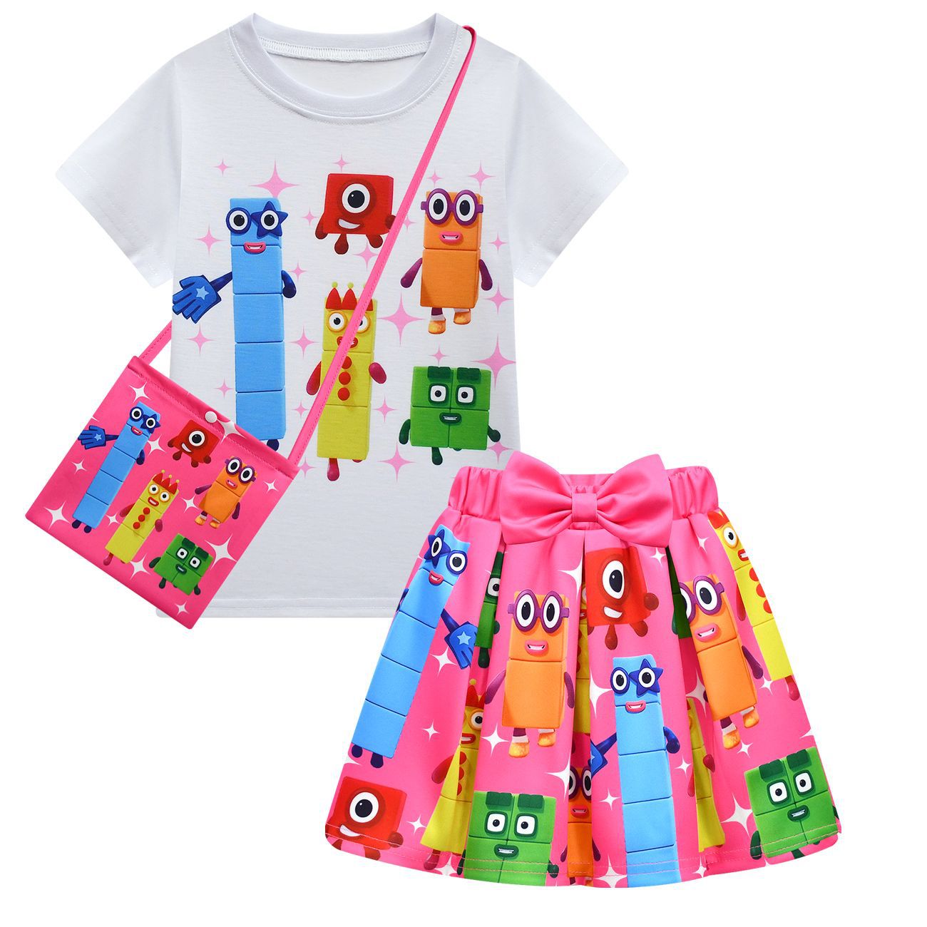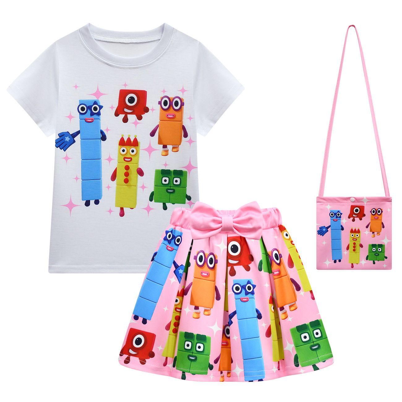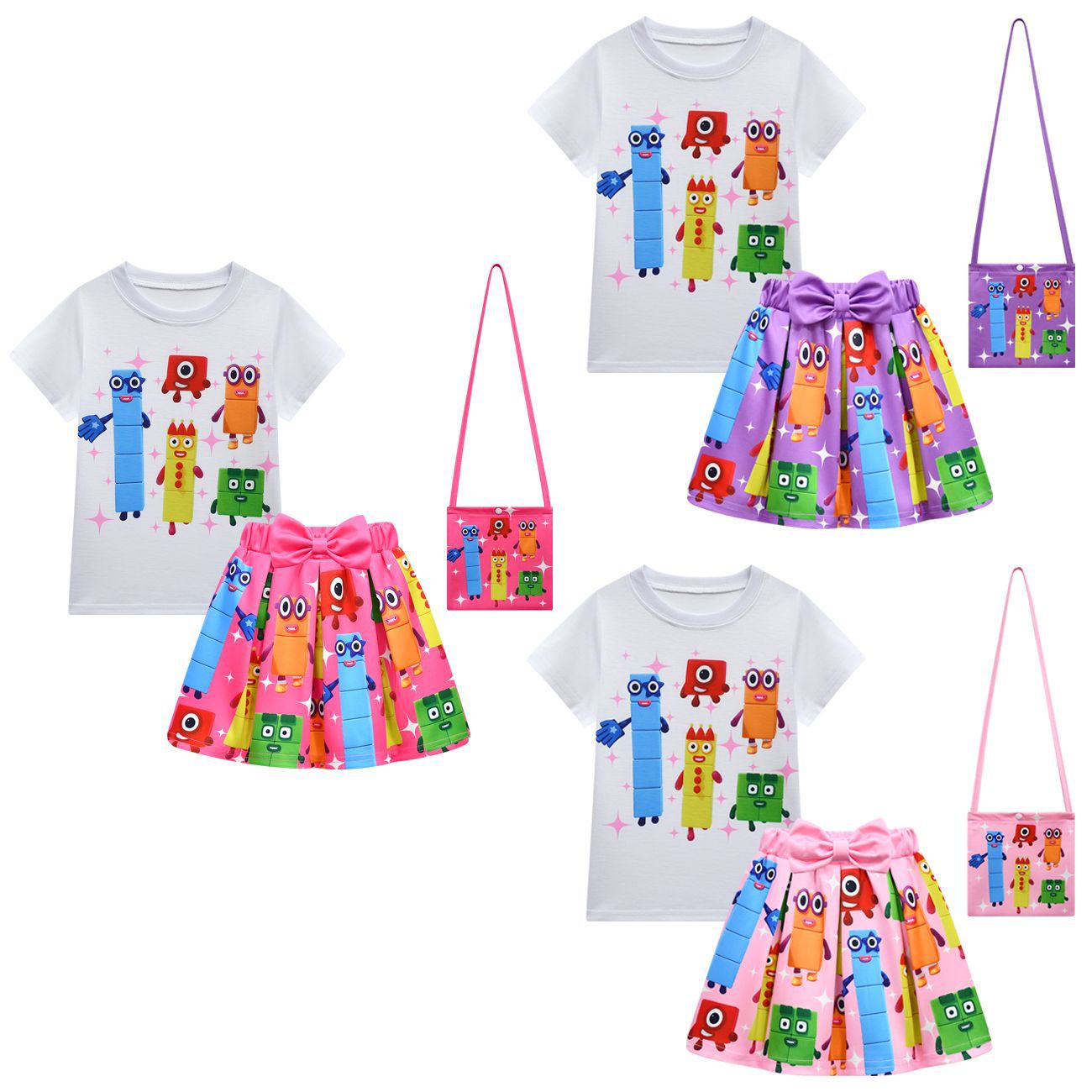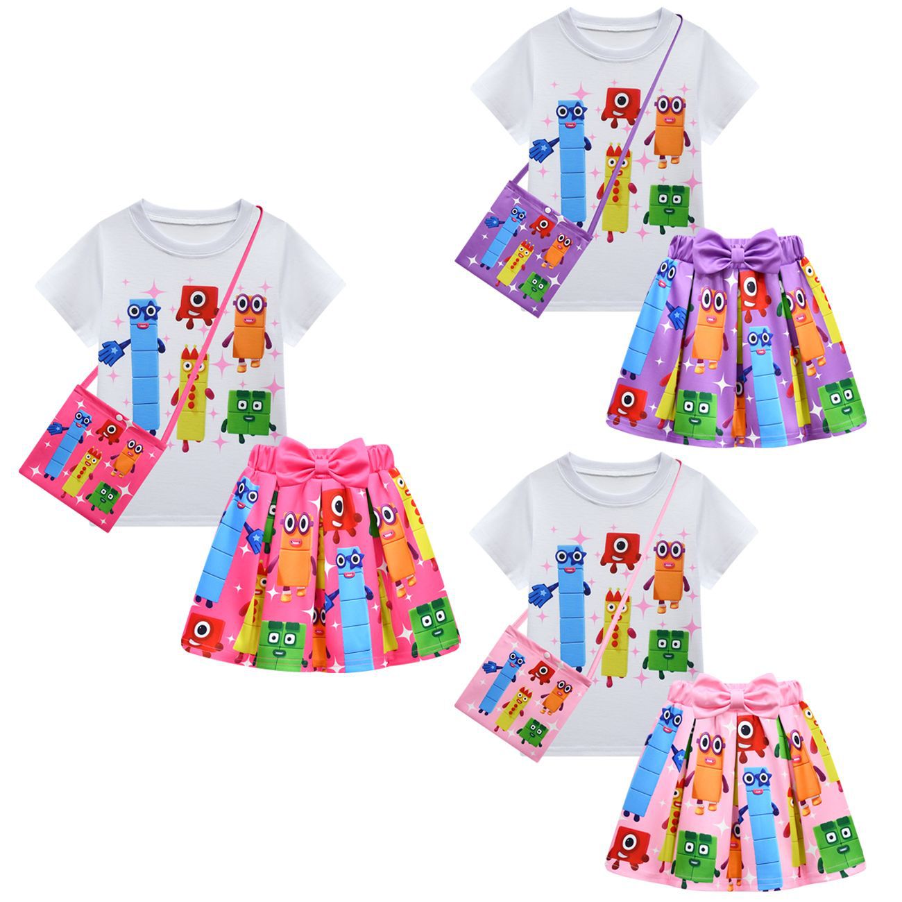새로운 디지털 빌딩 블록 Numberblocks 소녀 짧은 소매 주름 치마 가방 3 피스 3058 81824스토어 가기