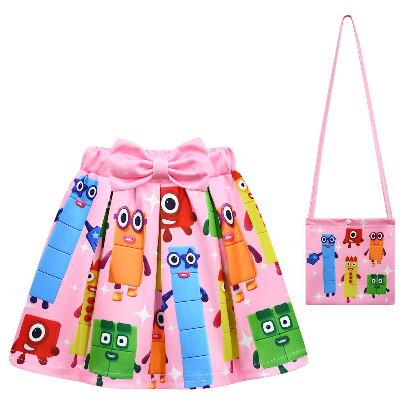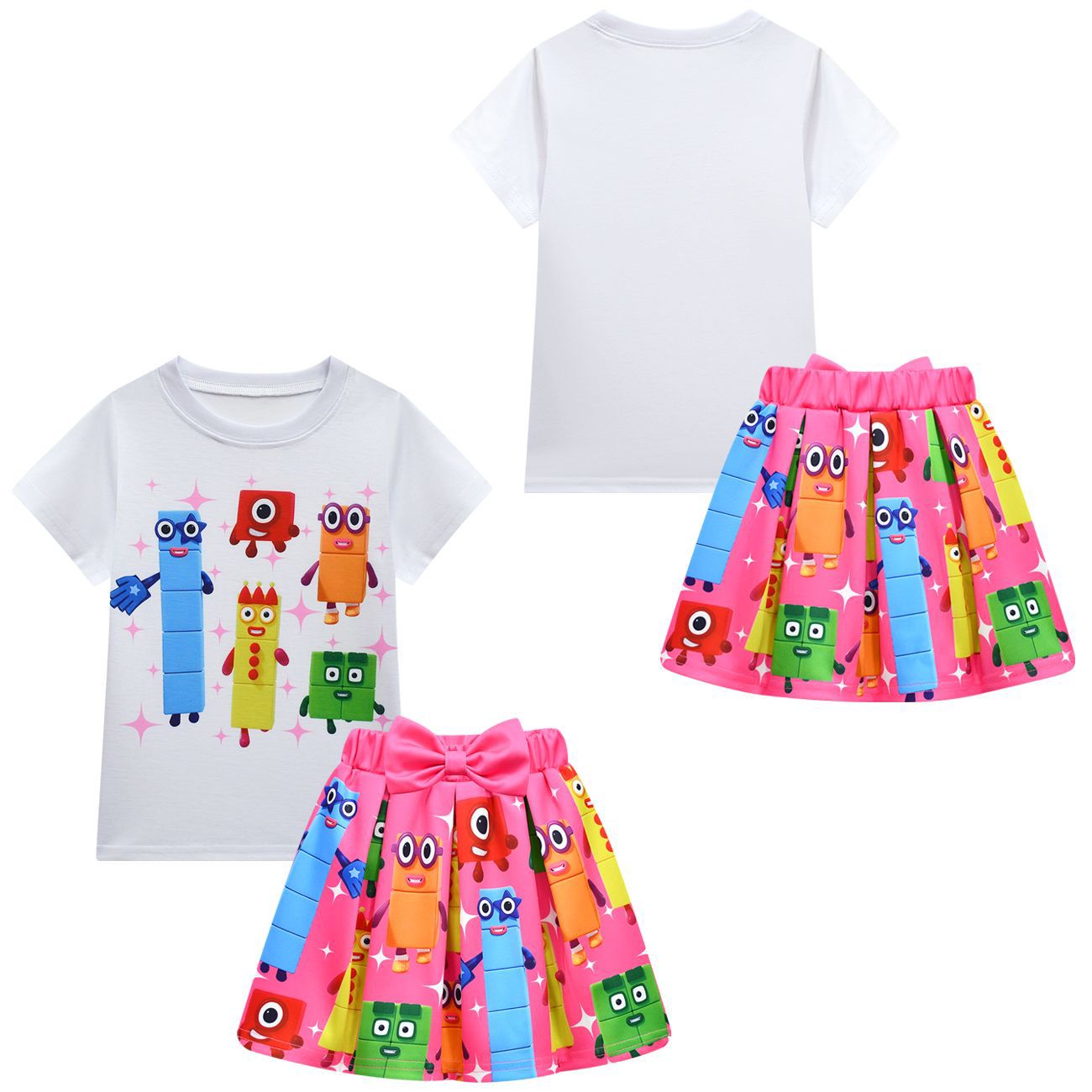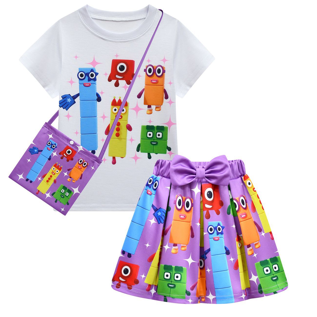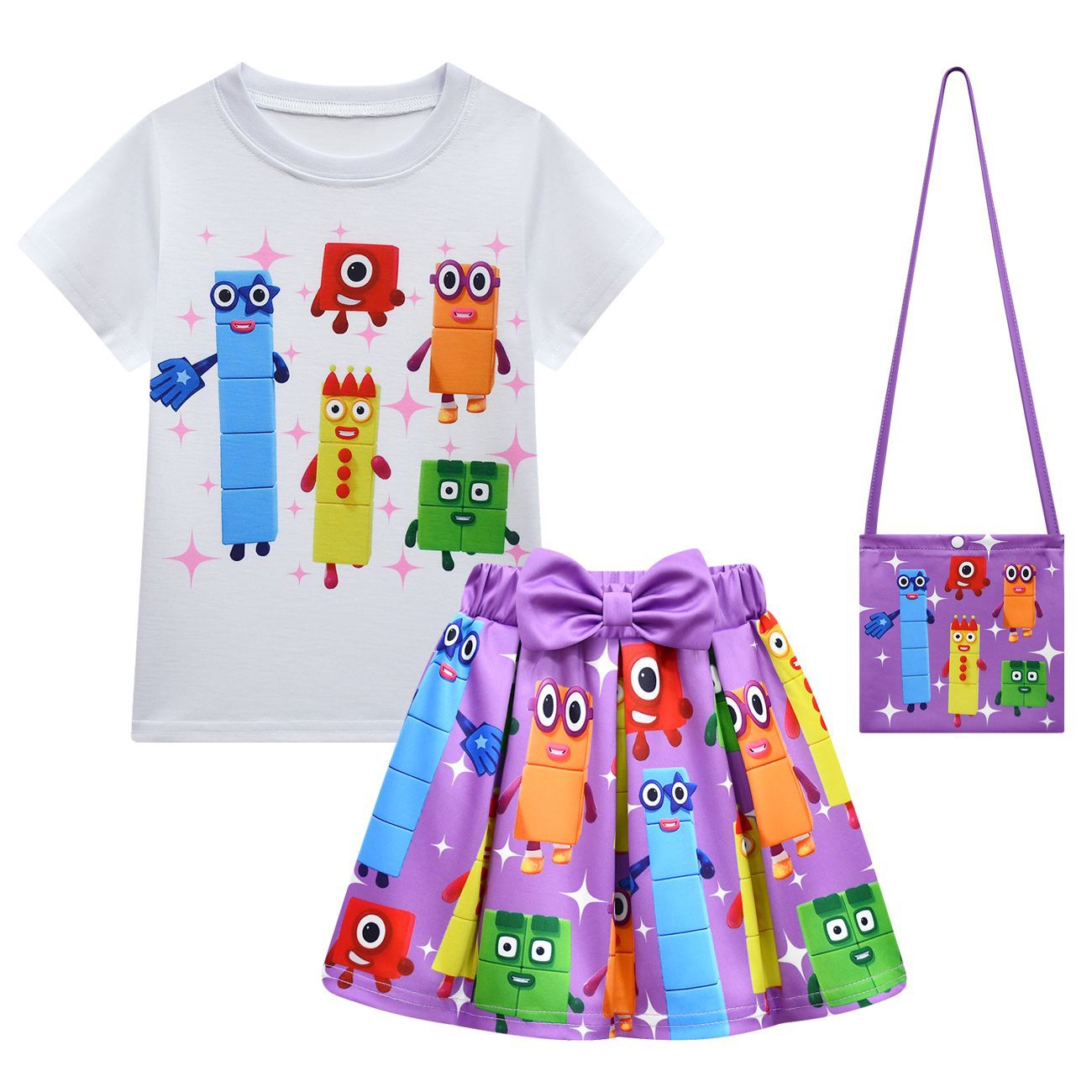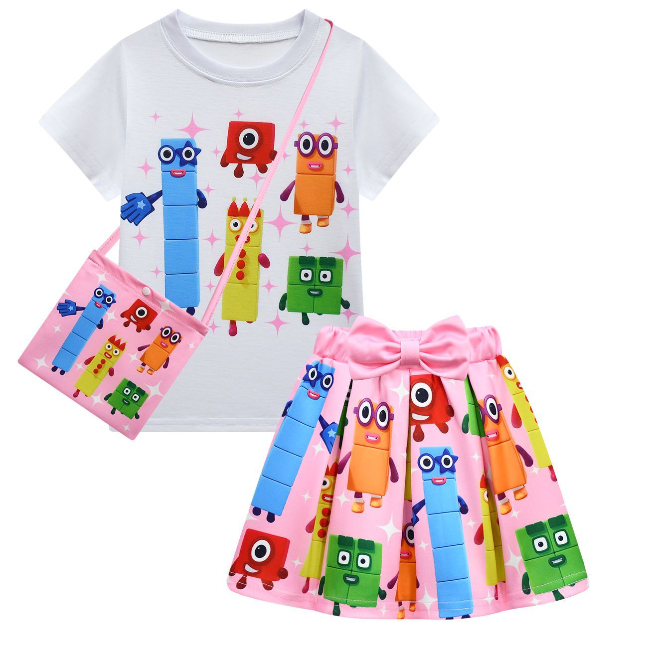 새로운 디지털 빌딩 블록 Numberblocks 소녀 짧은 소매 주름 치마 가방 3 피스 3058 81824스토어 가기