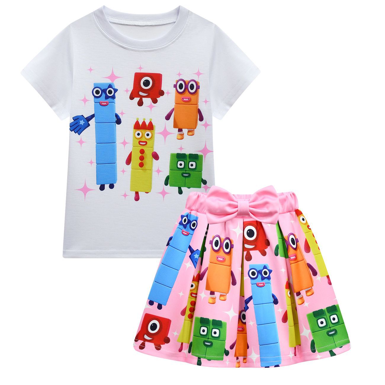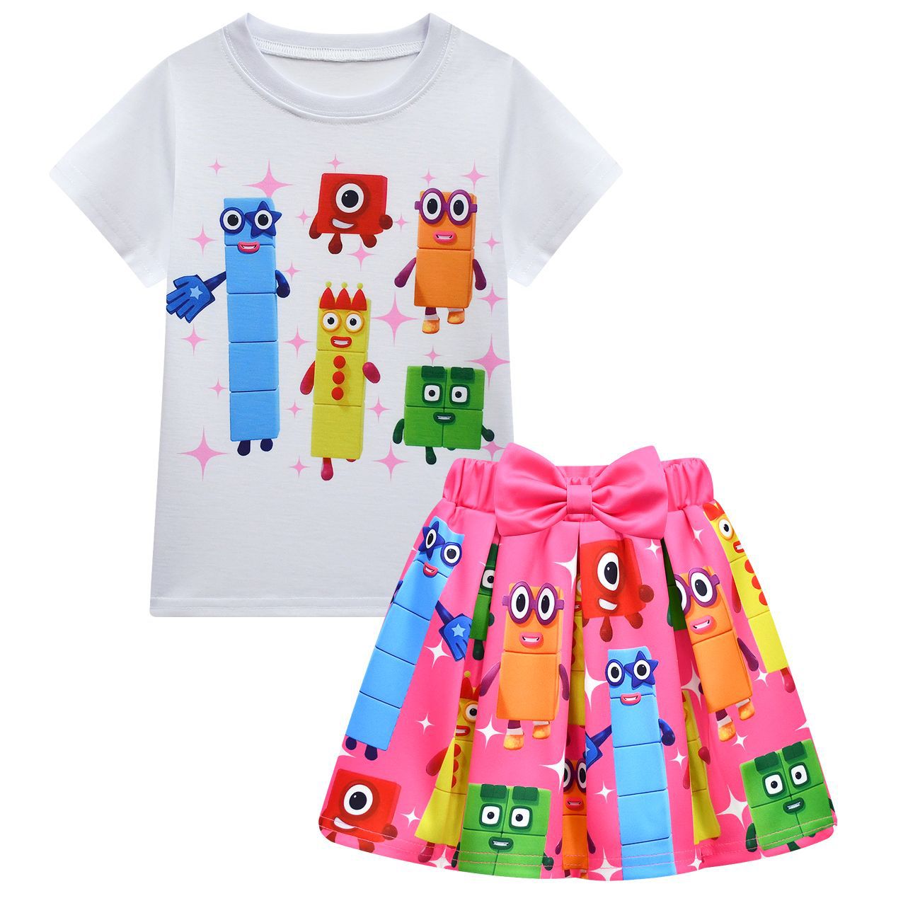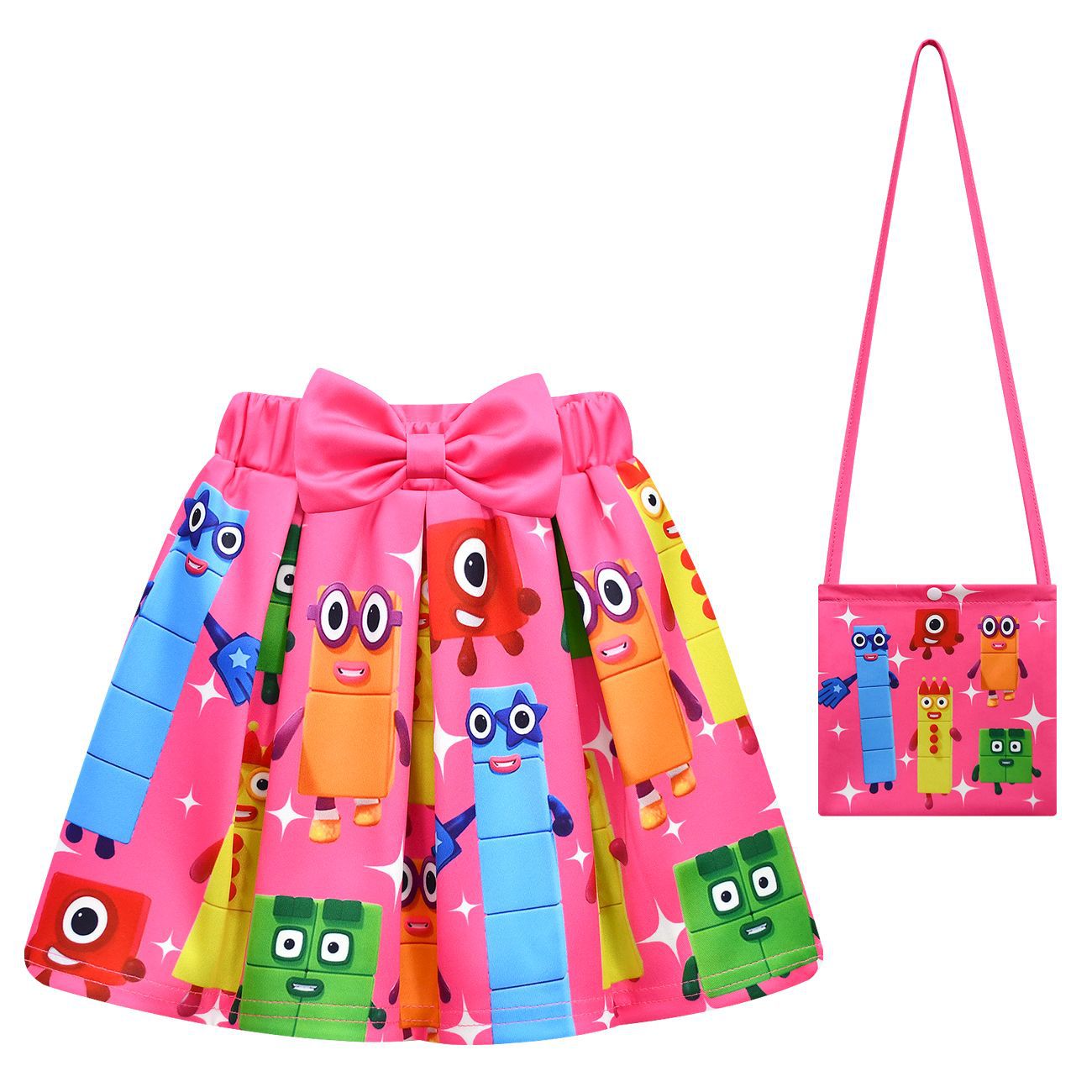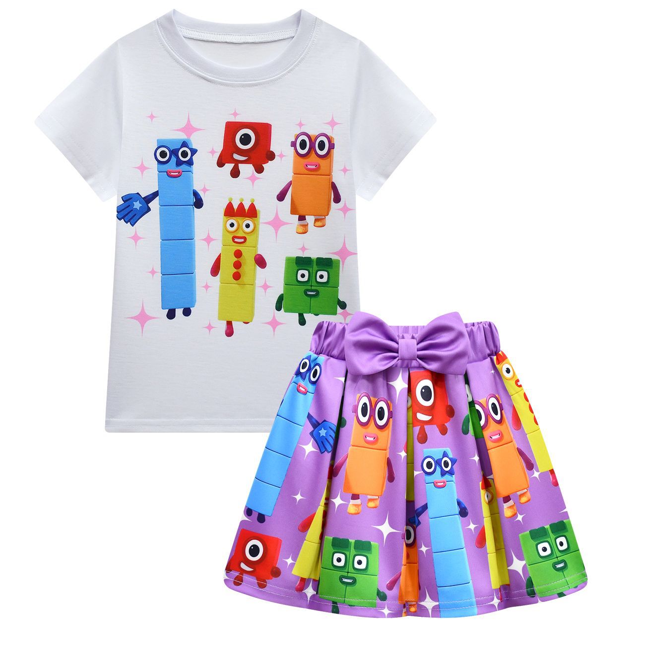 새로운 디지털 빌딩 블록 Numberblocks 소녀 짧은 소매 주름 치마 가방 3 피스 3058 81824스토어 가기