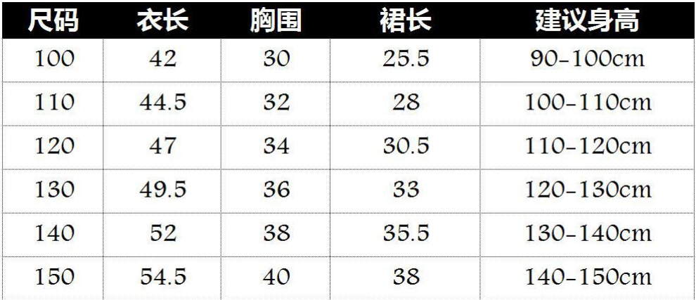 6个码数:  100  110 120 130 140 150