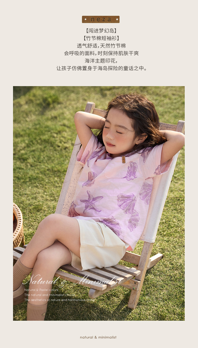 네자 [네버랜드로 침입] 어린이 반팔 여름 코튼 걸스 티셔츠 탑 보이스 티셔츠 아동복