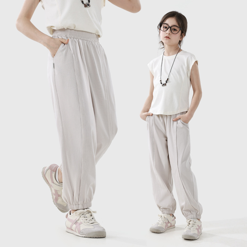Duomiao House Girls 'Pants 얇은 모기 방지 바지 어린이 스포츠 바지 2025 여름 새로운 서양 스타일 캐주얼 바지 여름 착용스토어 가기