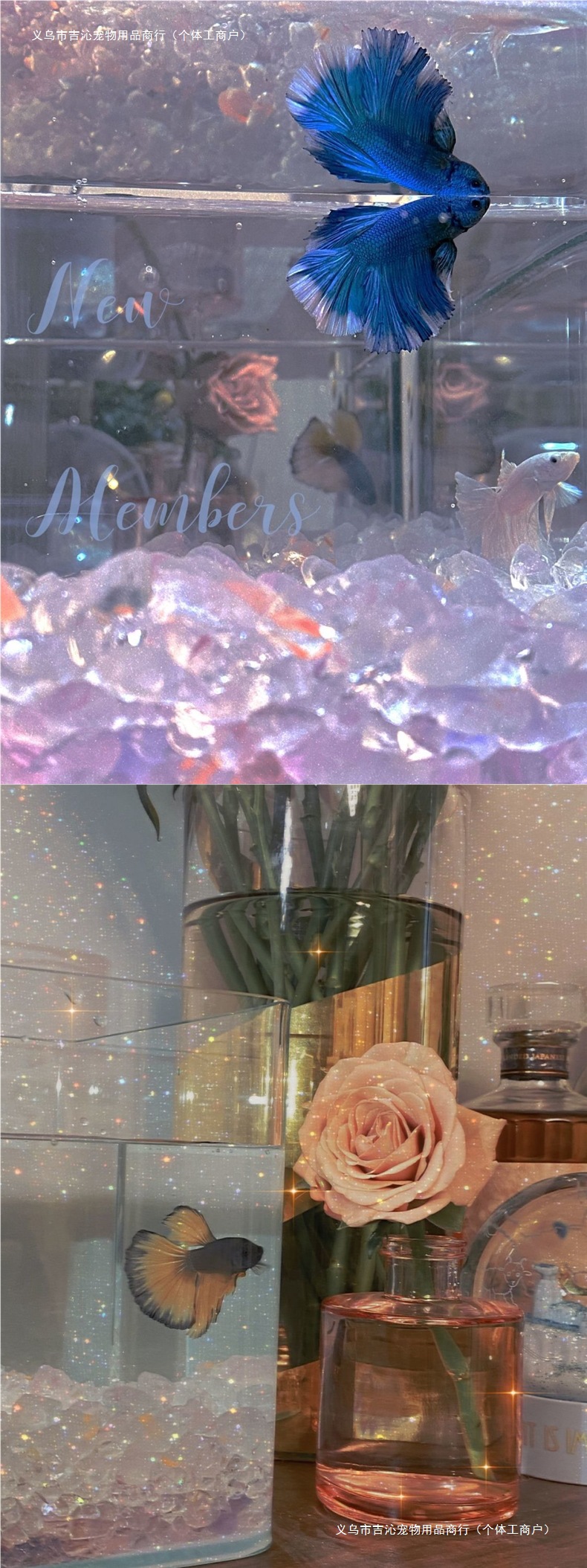 물고기 탱크 달빛 돌 풍경 포장 돌 작은 양동이 물고기 탱크 창조적 인 크리스탈 바닥 원사 수족관 세트 완전한 세트