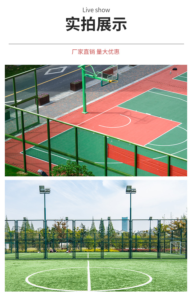 두꺼운 PE 코팅 경기장 울타리, 녹 방지 및 부식 방지 경기장 보호망, 축구장 및 농구장 격리망
