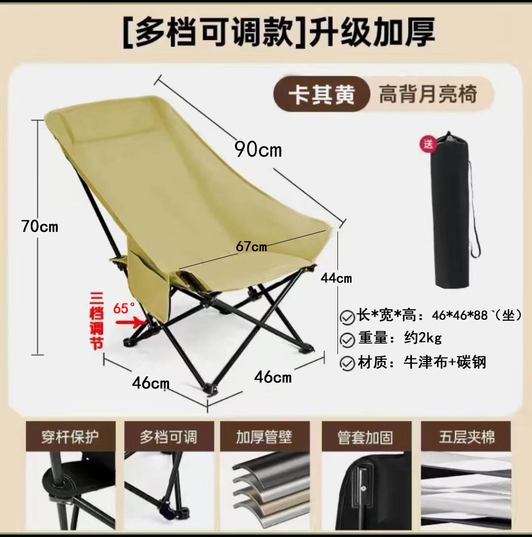 • 카키 600D 더블 레이어 문 체어 (클래식 스타일)