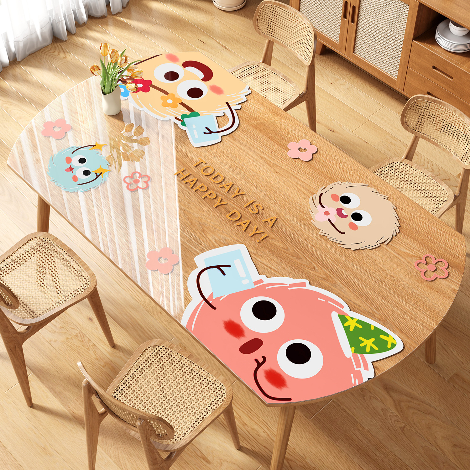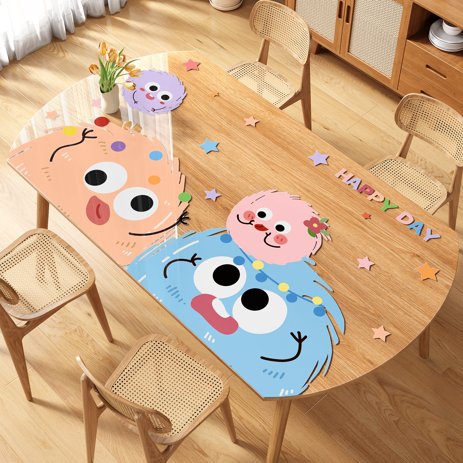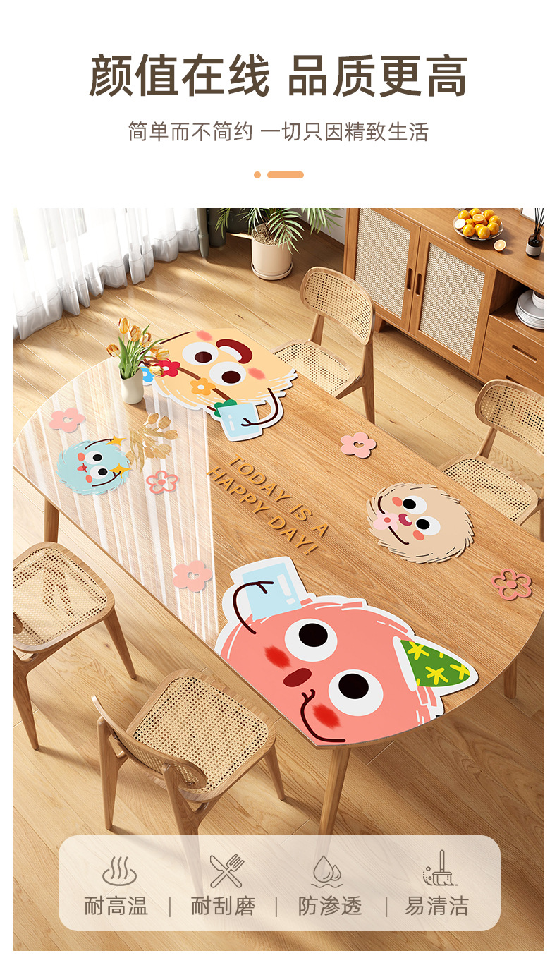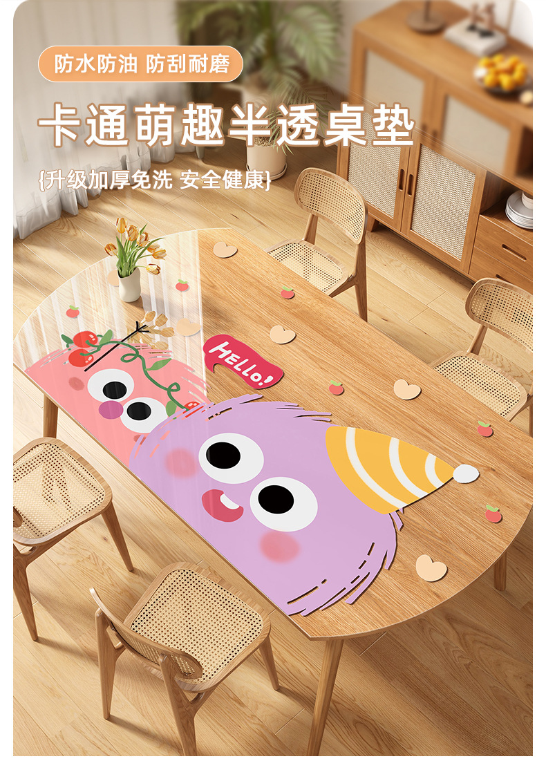 도파민 투명한 타원형 식탁 매트 방수 및 오일 증거 PVC 부드러운 유리 빛 고급 고급 데스크탑 보호 테이블 천